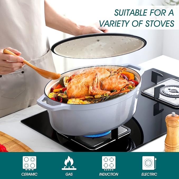 vancasso Enameled Cast Iron Dutch Oven, 9.3 Quart Dutch Oven Pot with Lid, Oval Dutch Oven Cast Iron Pot with Non Stick Enamel Coating for Bread Baking