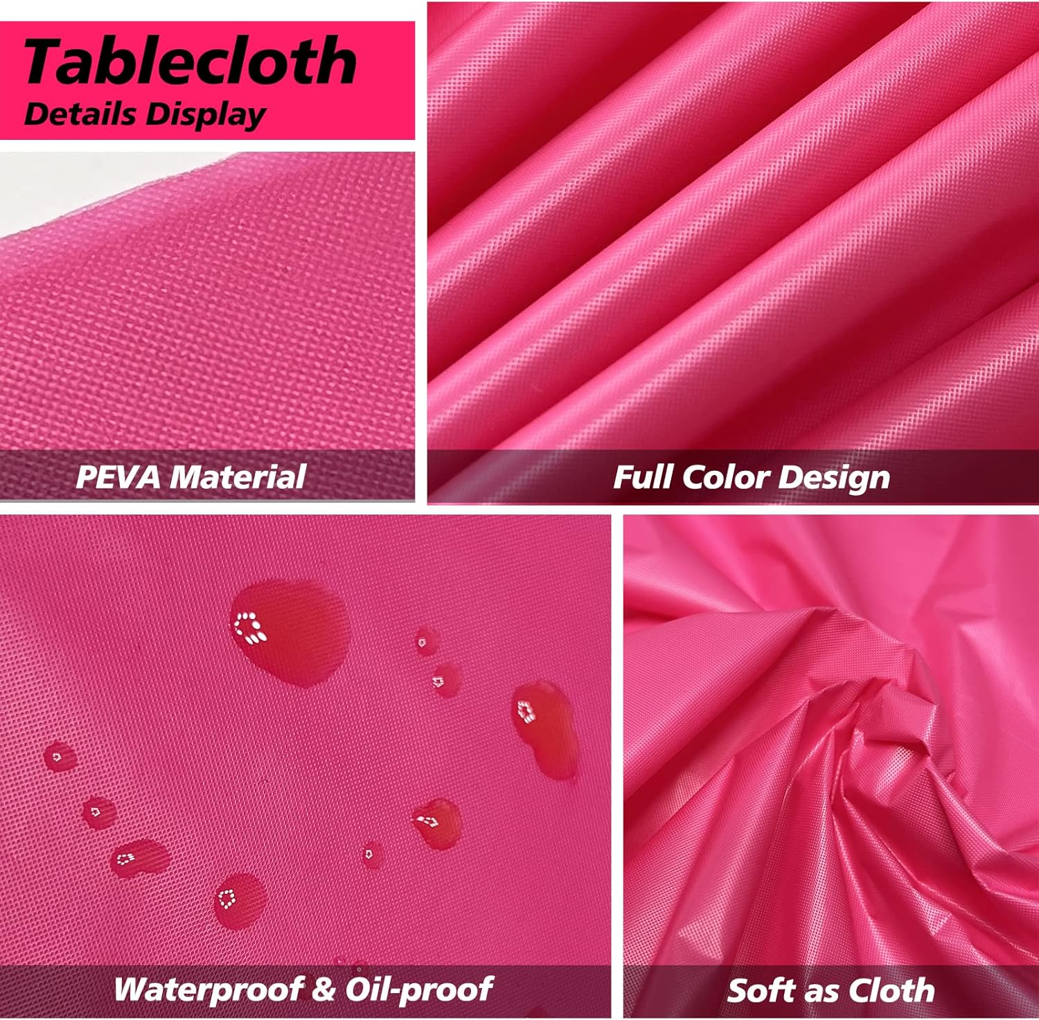 • 🥂【Ideal Decorations For Party】How to make an unforgettable birthday party? You just need to decorate your party venue or home with the hot pink party tablecloth. The colorful table cloth is suitable for both indoor and outdoor decoration. This stylish table cover is ideal for special occasions or everyday entertainin. Perfect for birthday party, graduation party, weddings, Thanksgiving, Christmas, cocktail party, BBQs, outdoor events and holiday celebrations.