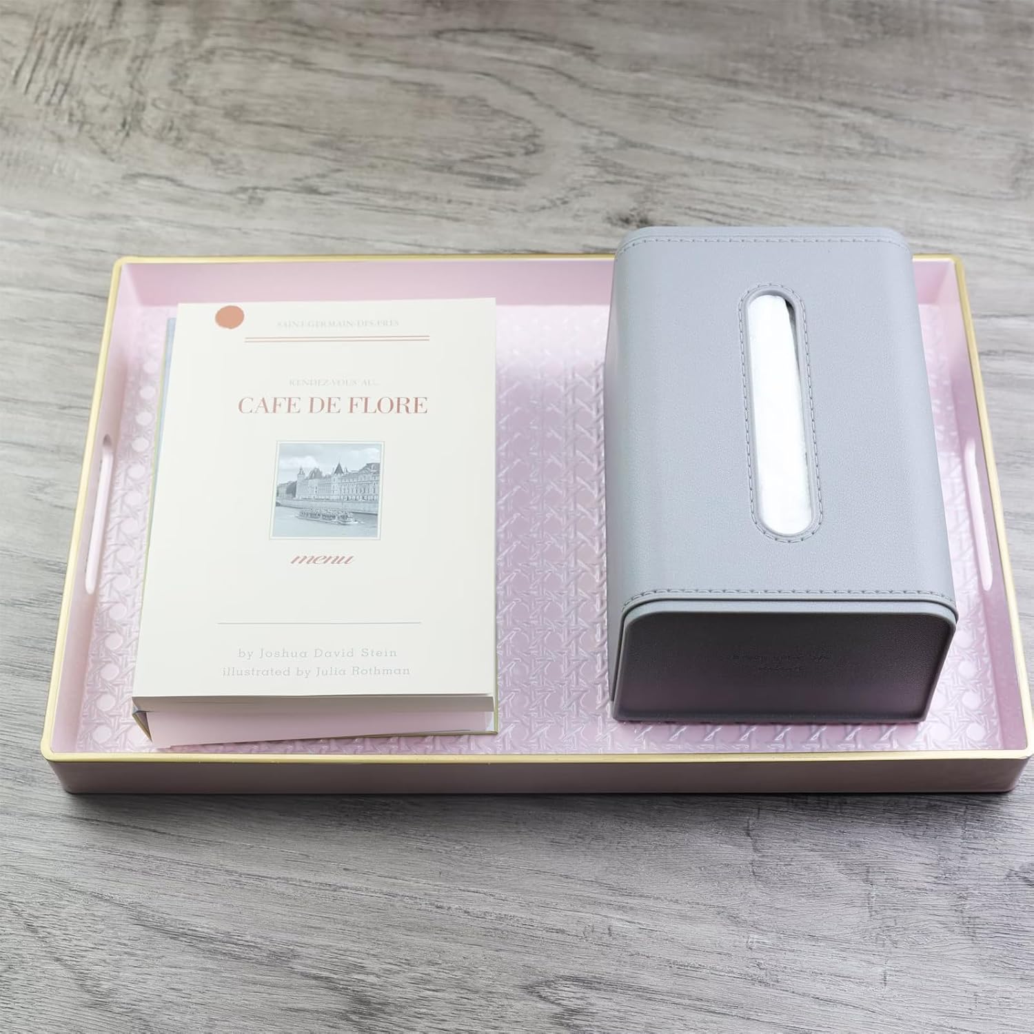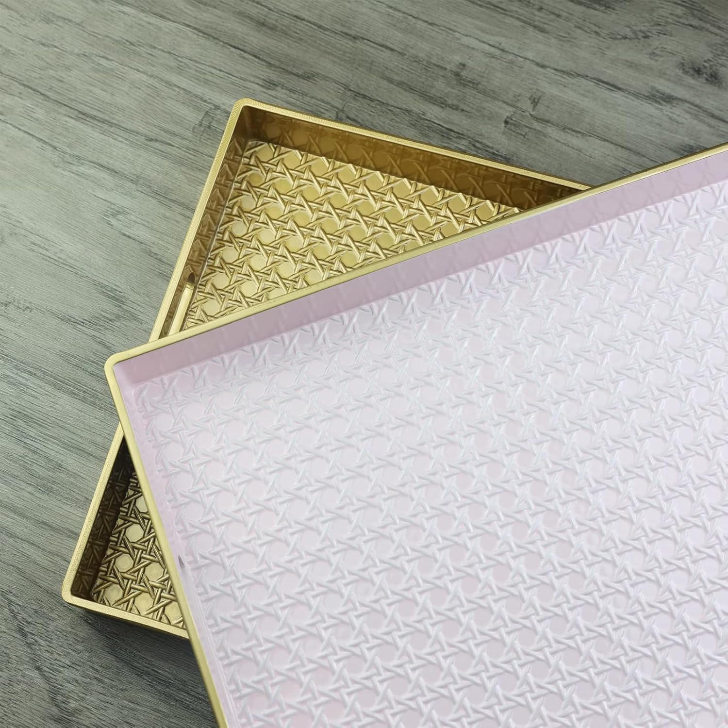 Pink Decorative Coffee Table Tray, Rectangular Plastic Serving Tray with Handles for Living Room, Ottoman, Bathroom, 15.7"*10.2"