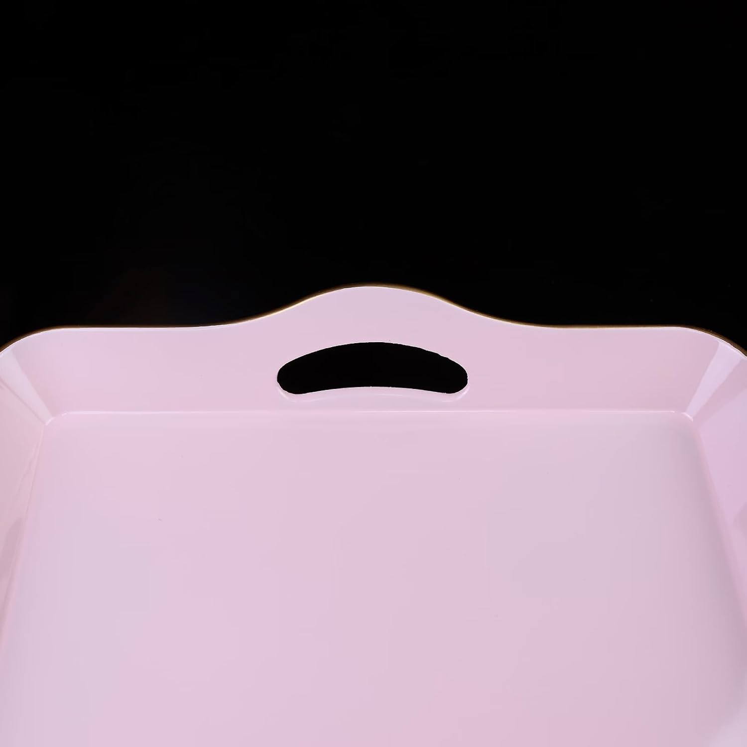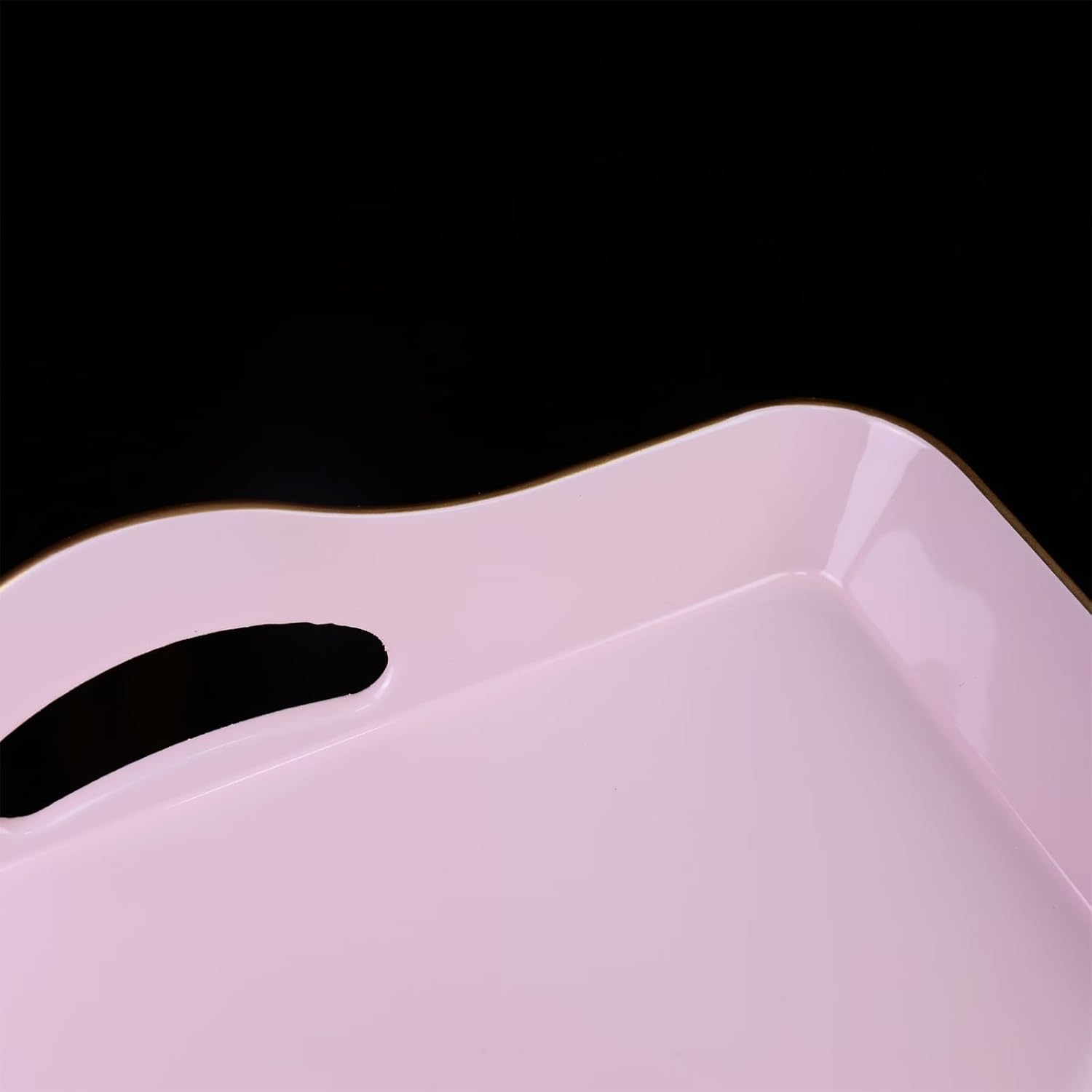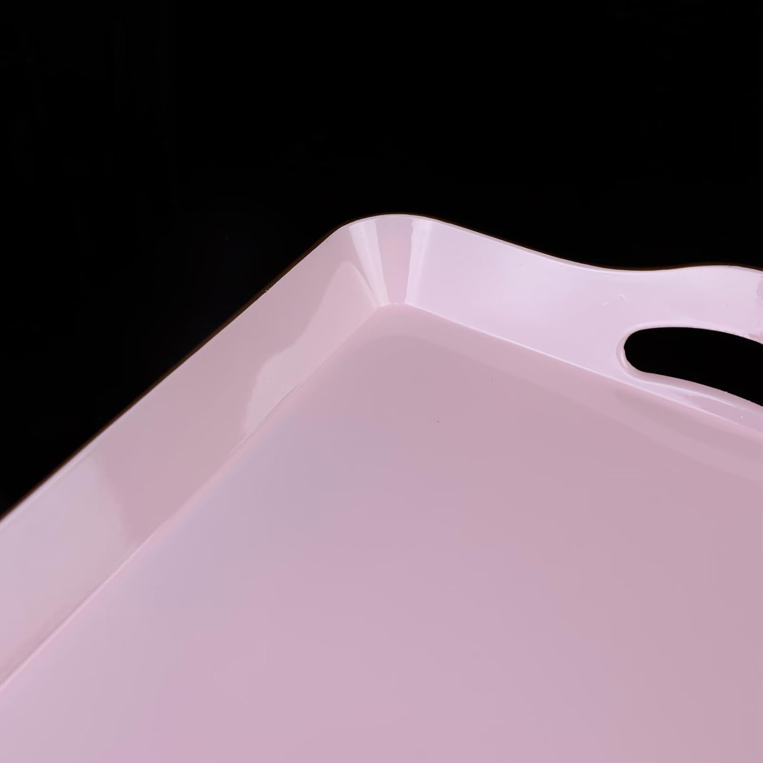 Pink Decorative Tray for Coffee Table with Handles, Plastic Rectangular Serving Tray for Living Room, Bathroom, Outdoors, 11.8"*17.3"
