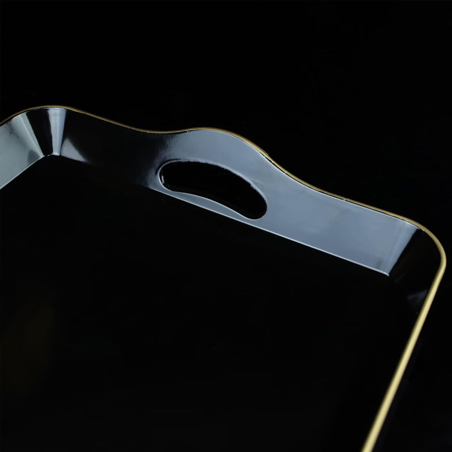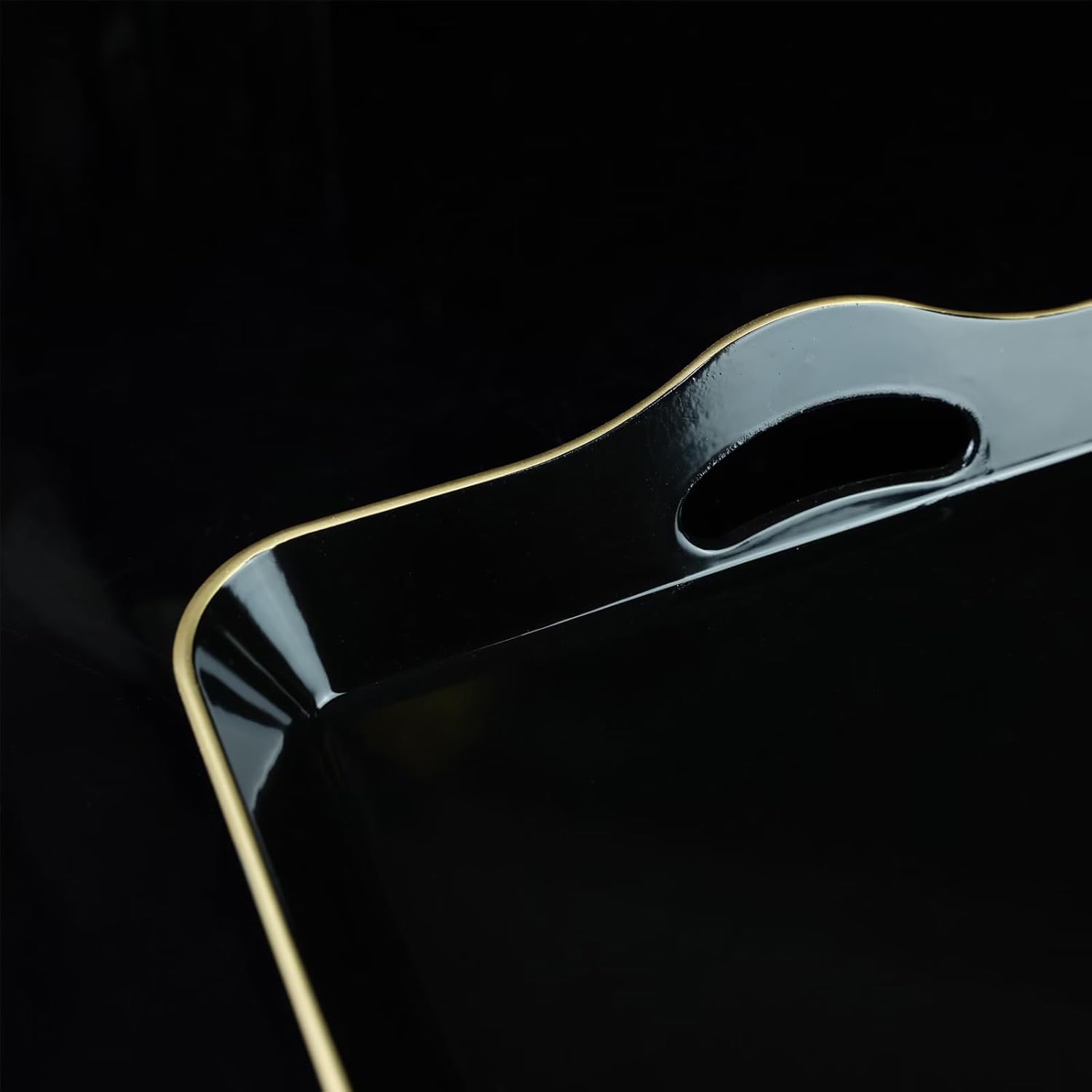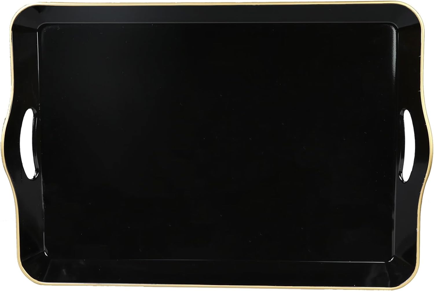 Black Decorative Tray for Coffee Table with Handles, Plastic Rectangular Serving Tray for Living Room, Bathroom, Outdoors, 11.8"*17.3"