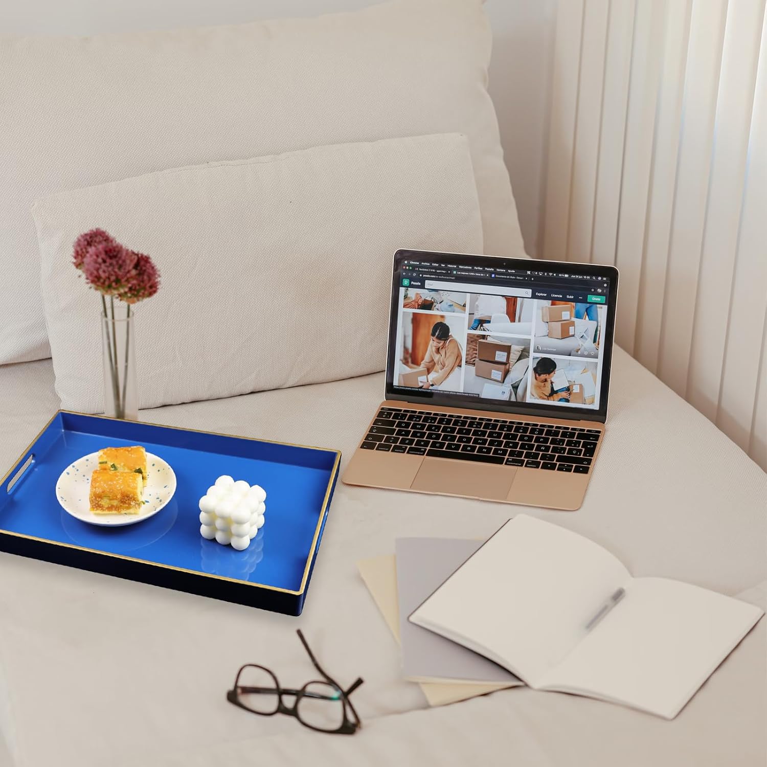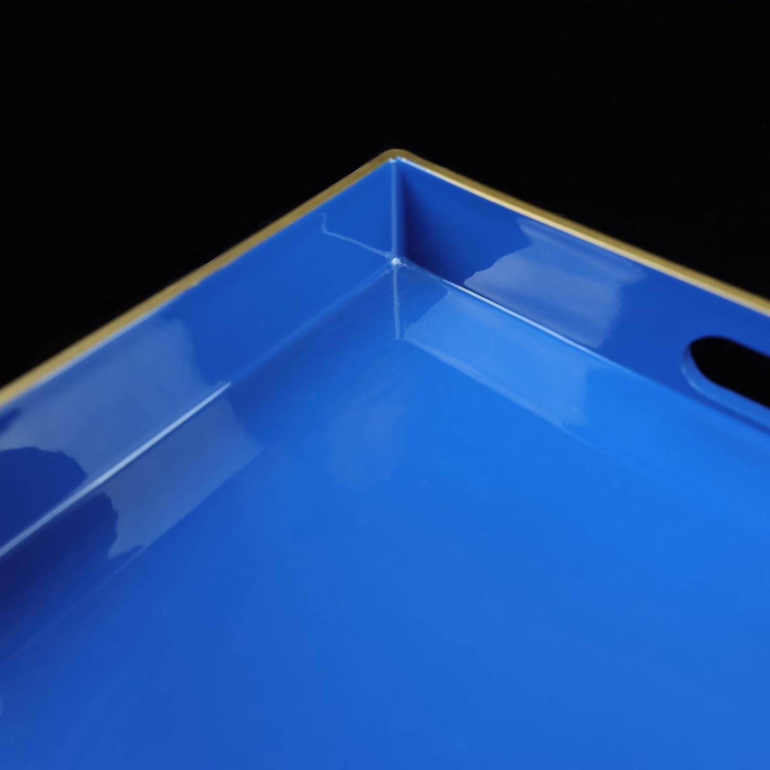 Blue Decorative Coffee Table Tray, Rectangular Plastic Serving Tray with Handles for Living Room, Ottoman, Bathroom, 15.7"*10.2"