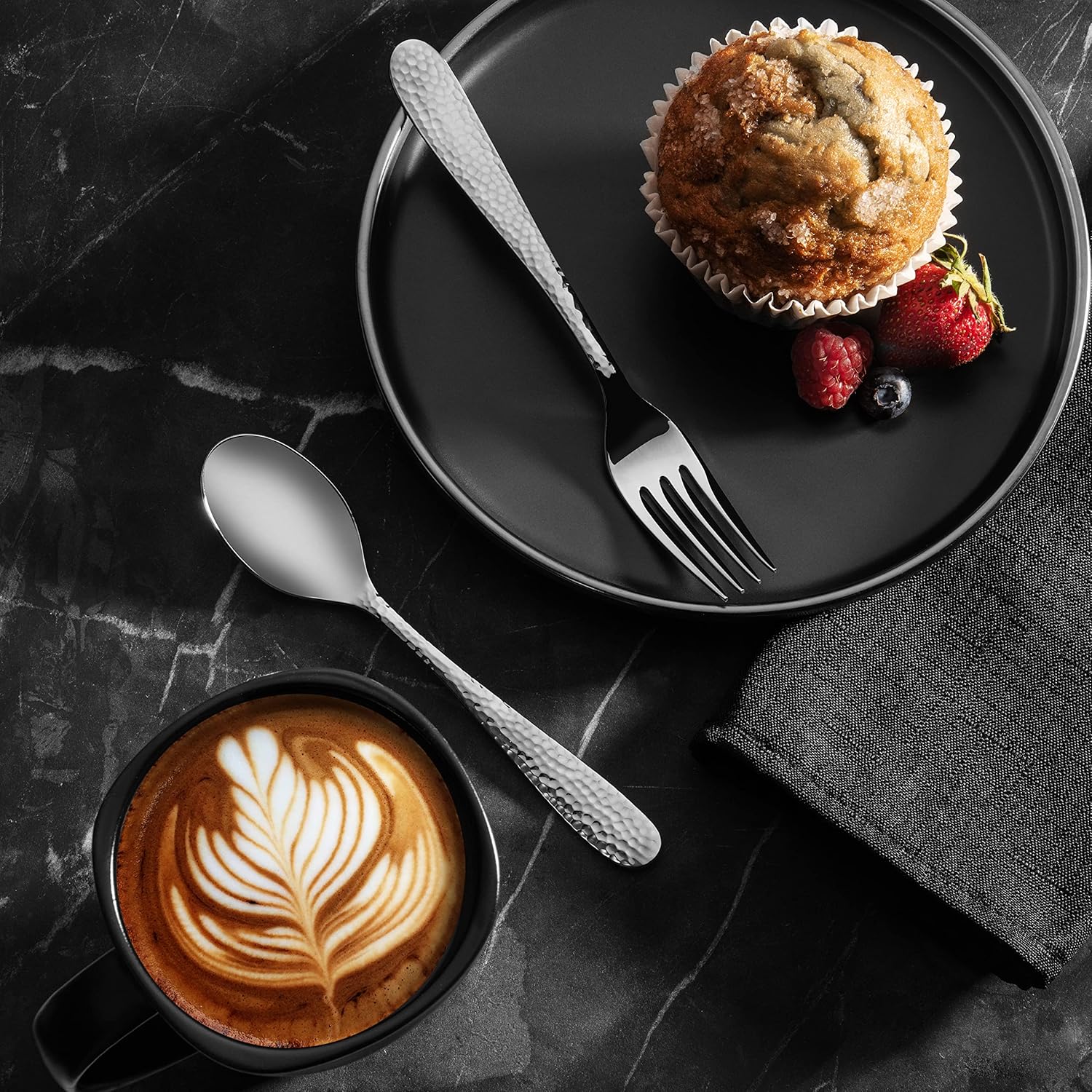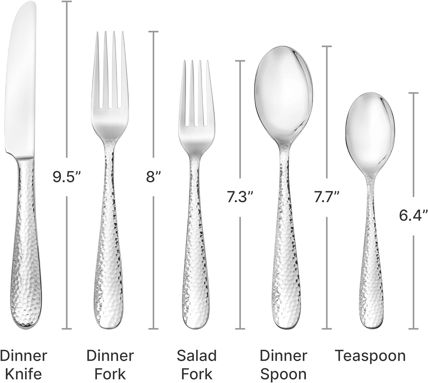 • Bergamo Hammered 20-piece cutlery set, service for 4: includes 4 dinner knives, 4 dinner forks, 4 salad forks, 4 dinner spoons, and 4 teaspoons