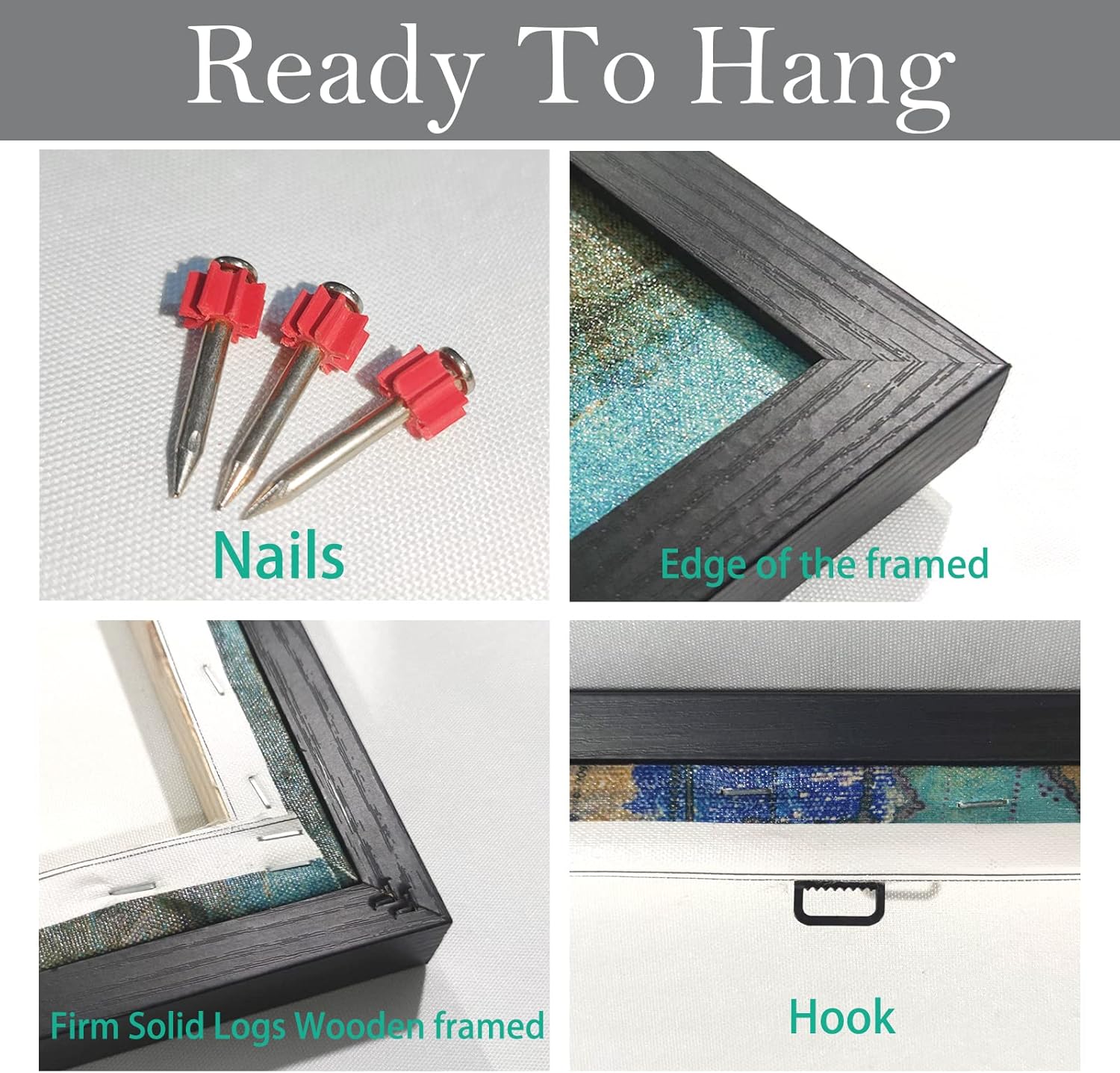 • EASY TO HANG:each panel of canvas painting already stretched on solid wooden frames, gallery wrapped, with hooks and accessories, ready to hang.