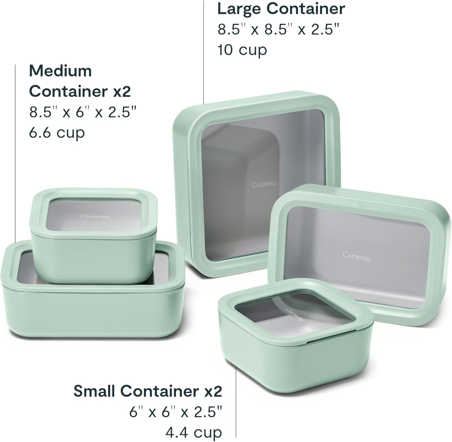 • BEAUTIFULLY DESIGNED: The cleanest, best-looking approach to storing your food. Our glass container set features clear glass lids for easy viewing that puts your leftovers in the spotlight. Each set comes in classic colors that will match with your entire Caraway collection.