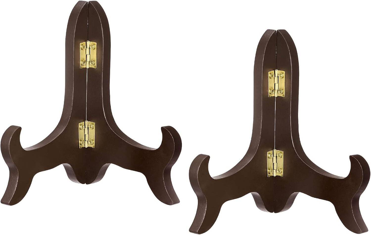 uxcell 2pcs 5" Easel Plate Holder, Wooden Folding Display Stand Brown for Decorative Picture Frame