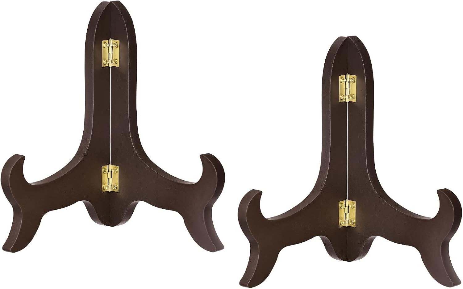 uxcell 2pcs 7" Easel Plate Holder, Wooden Folding Display Stand Brown for Decorative Picture Frame