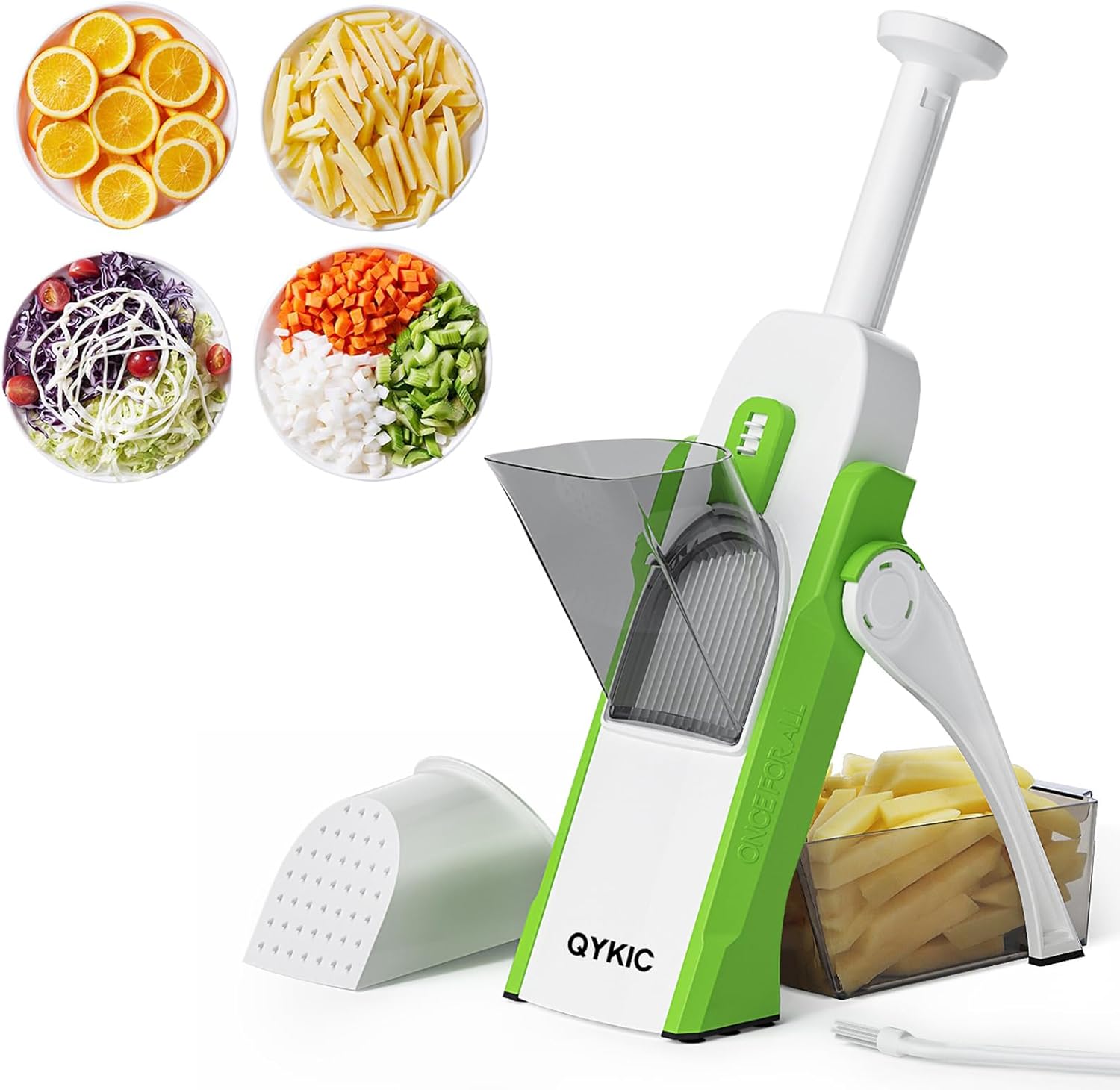 • AFTER-SALE WARRANTY: Everything we do will make life easier, better, and more enjoyable. In the unlikely event you don't like your Vegetable chopper&slicer, we're here to help you replacement! Please read the instruction manual provided with the QYKIC food Slicer&chopper carefully before use. If you have any questions or problems about it, please message the seller through Amazon, we will reply within 24 hours,