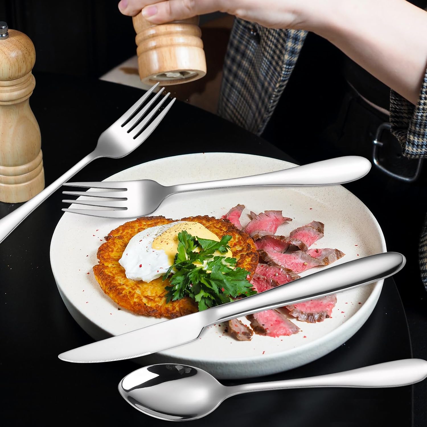 • EASY TO CLEAN: This 40-piece silver heavy eating utensils set is a stylish and functional addition to any kitchen. Made from durable materials, these utensils are easy to clean, making them designed specifically for everyday use