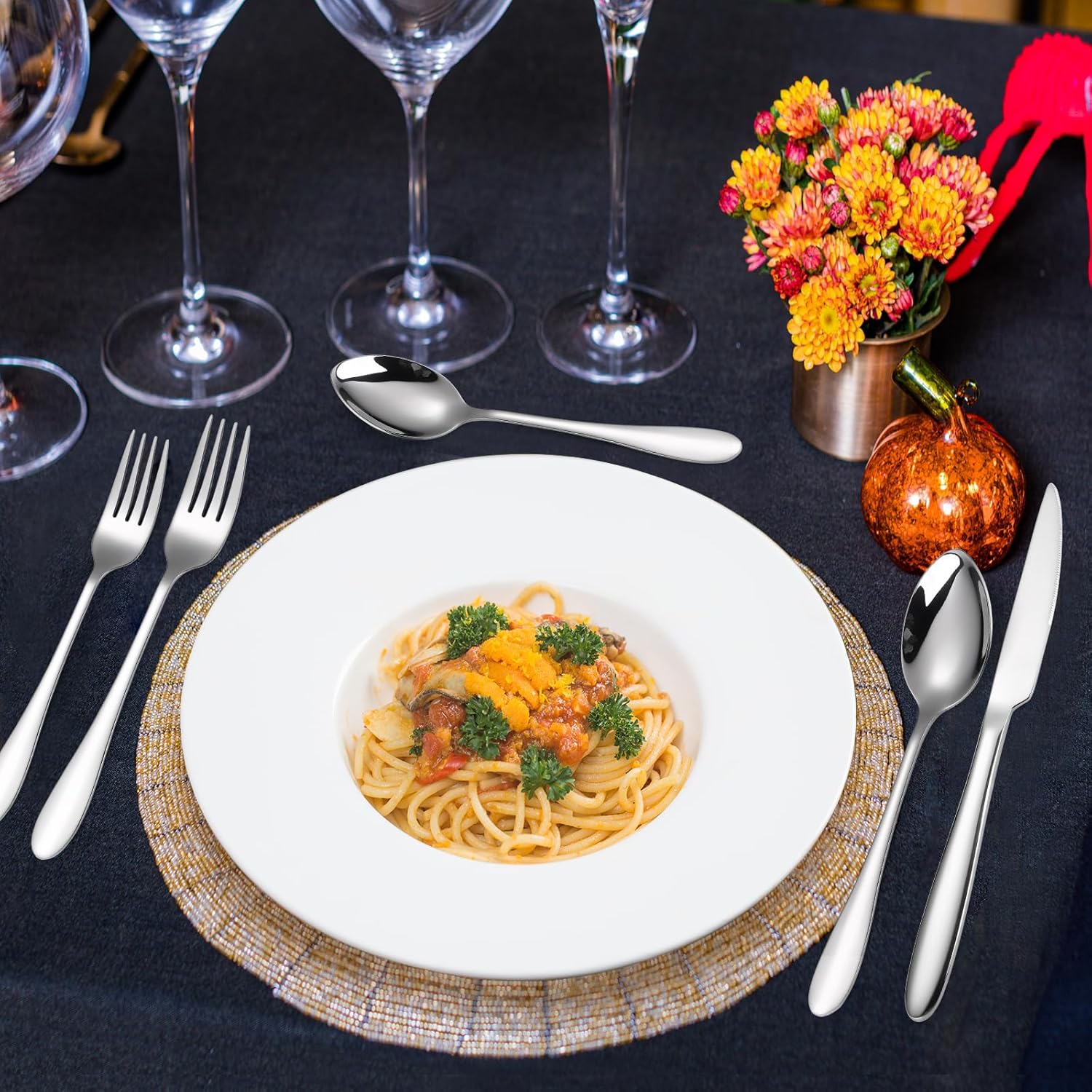 • STYLISH: Elevate your dining experience with this elegant 40-piece silver heavy eating utensils set. Crafted with quality and style in mind, this set is designed specifically for special occasions or everyday use