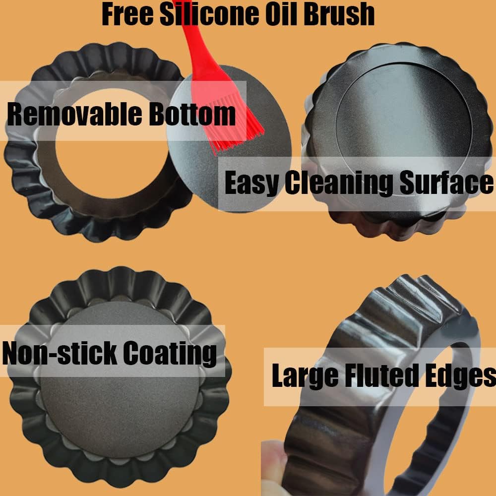 • 【EASY CLEANING】Each quiche pan with non-stick surface. These metal tart pans bake evenly and didn’t stick to the pan, It is recommended to brush a layer of oil before use for better demoulding. They didn’t even look like they need to be cleaned. All parts are dishwasher safe.