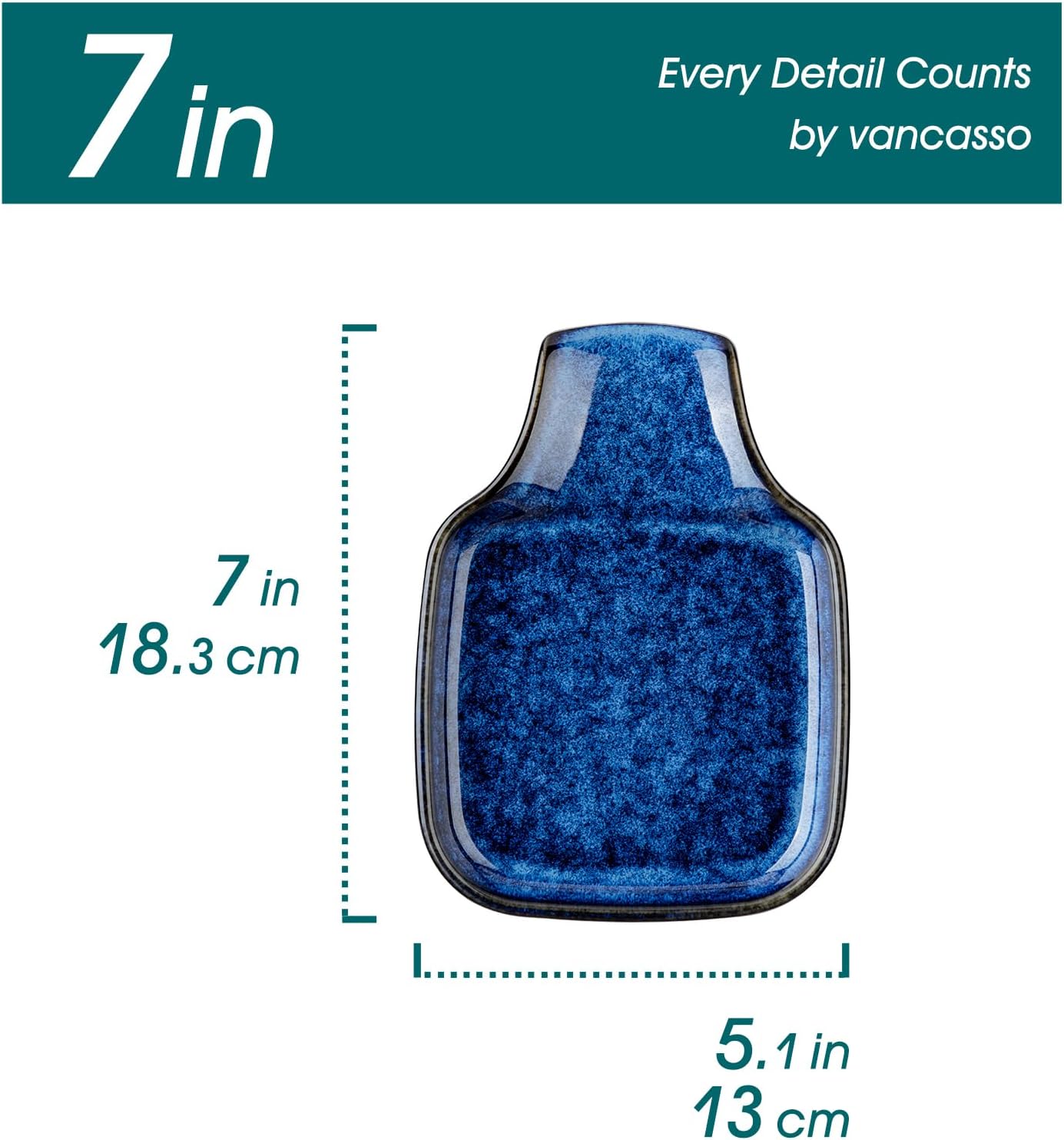 vancasso Stern Spoon Rest for Kitchen, Square Ceramic Spoon Holder for Stove Top, Heat Resistant Utensil Rest for Countertop, Dishwasher Safe, Kiln Blue, 2 Pack