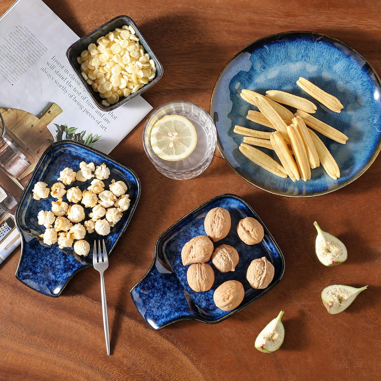 • 【Beautiful Modern Design】Enhance your kitchen cooking experience with these square dinner plates with an elegant blue finish. The reactive glaze creates a colour gradient that adds a touch of style to your dishes, making your table glamorous
