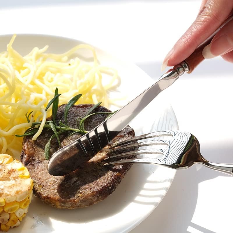 • WARM TIPS: Due to the wooden handle design, Hand wash recommended, dry them before storing. Do not use steel wire brush, hard sponge, cleaning cloth or any other hard-material cleaning tools for cleaning to avoid damage to the silverware.