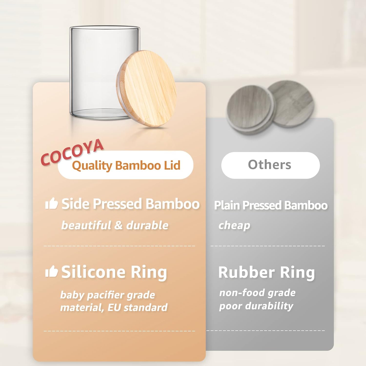 • 【Better Lids】 Made of selected bamboo, more durable and beautiful, with high-quality silicone ring, closed tightly, ants are kept away and your foods are safely stored.