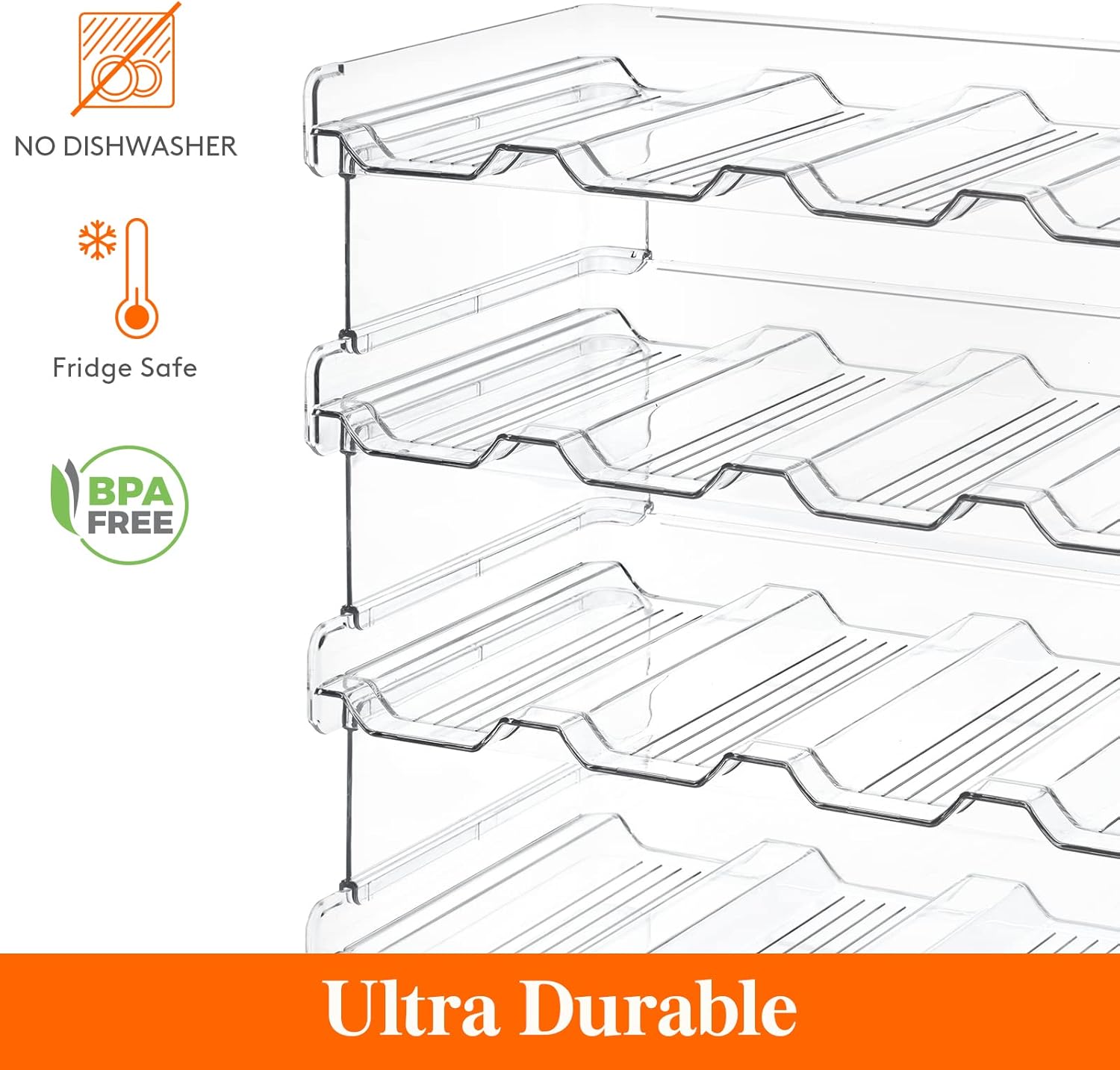 • Stackable Design: This set of 4 shelves can hold 4 containers in each shelf. The shelves can be firmly stacked on top of each other for maximum space utlization. Containers placed into a shelf stays in place and does not roll around. Easily pull out or push in bottles for accessibility. Keep your kitchen, cupboards and pantry organized with this storage set. You can also place them inside the refrigerator to chill up your drinks.
