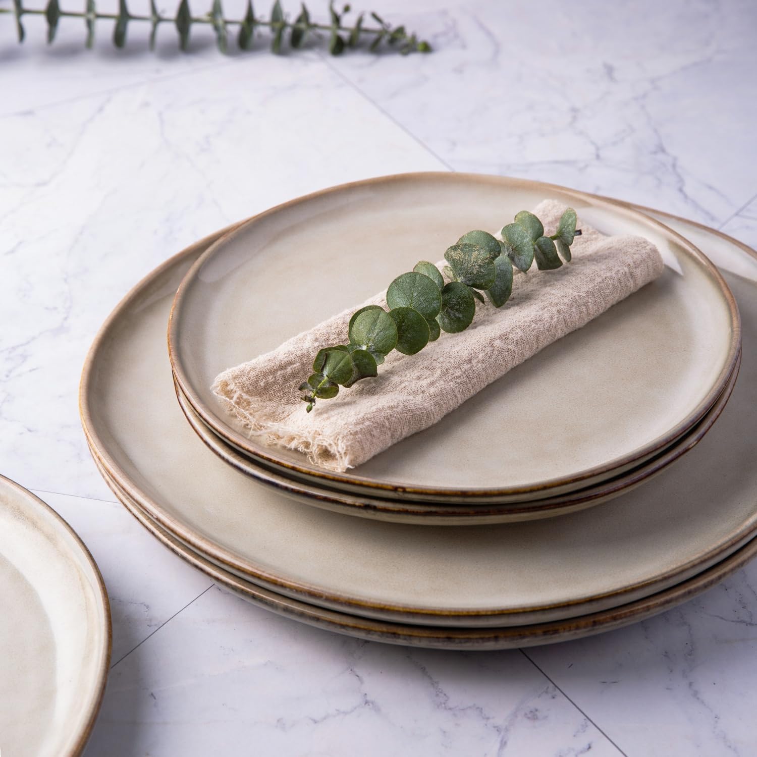 • DURABILITY EAT SAFTY:The plates are made of pro-grade material, and the glaze is all-natural. After 2340℉ high temperature firing for 13 hours, the plates are lead-free, cadmium free, meaning you will never have to worry about any health problem.The glaze is also extra strong to prevent scratches from your knives and forks.
