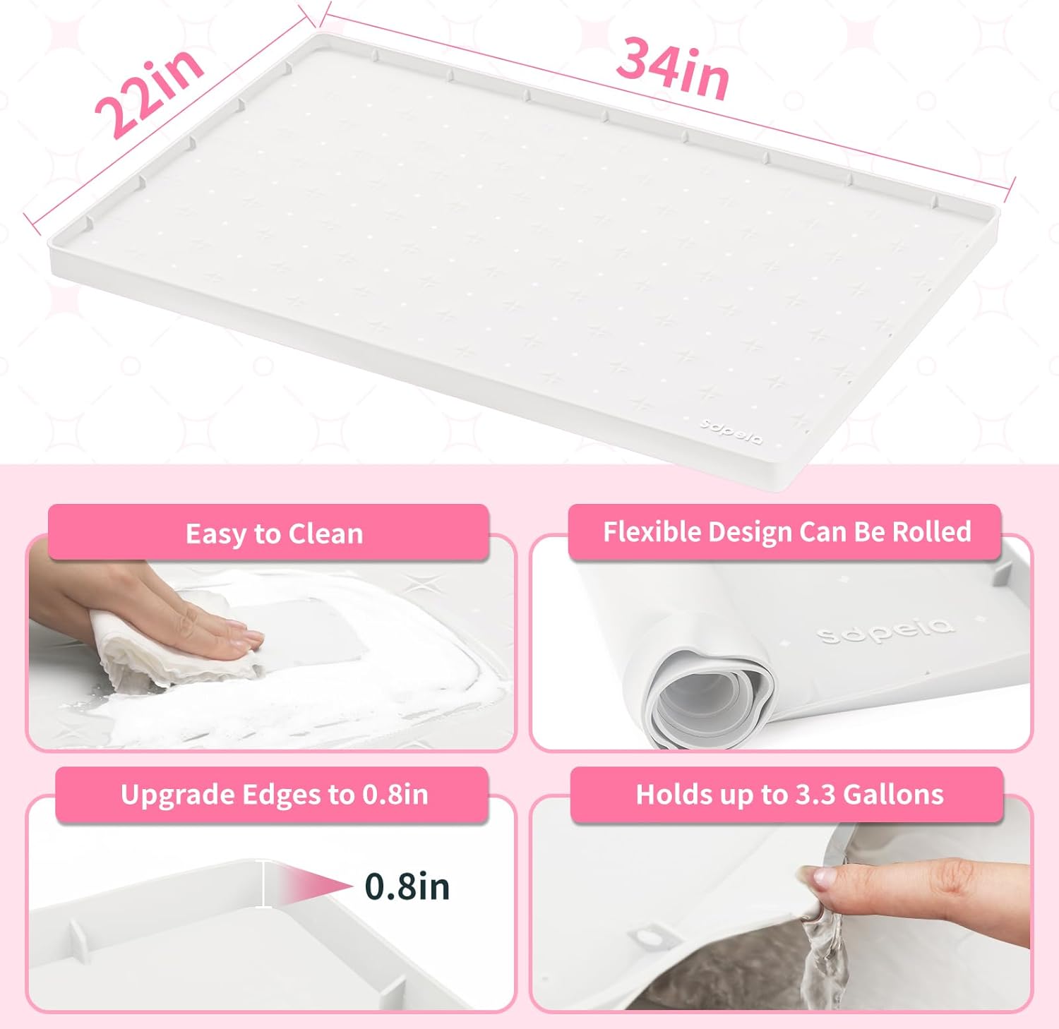 Sdpeia Under Sink Mat 34"×22" – Waterproof Silicone Cabinet Liner & Sink Protector for Kitchen & Bathroom, Multi-Purpose Organizers Tray for Pets, Laundry, Cat Litter Mat, White