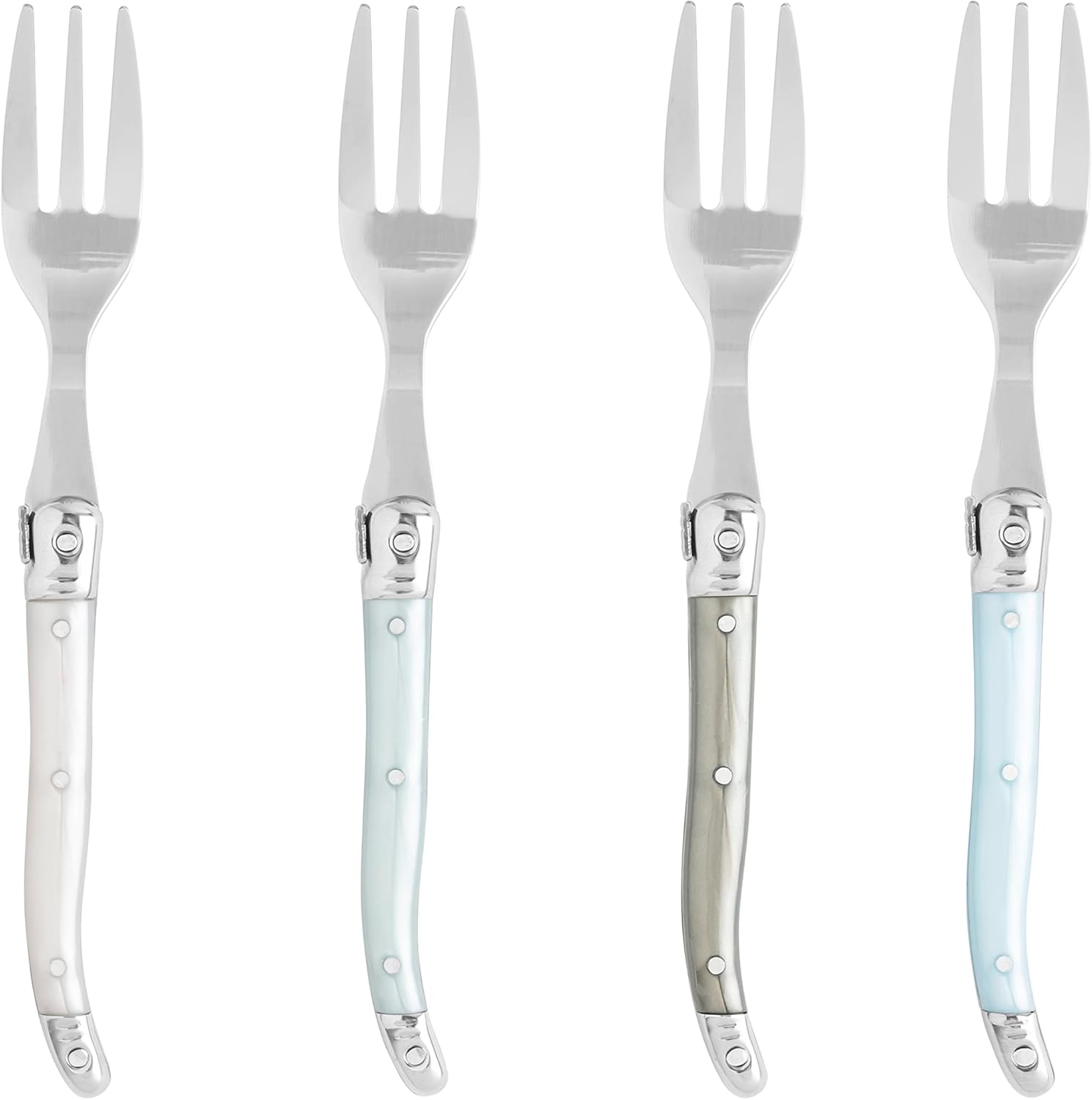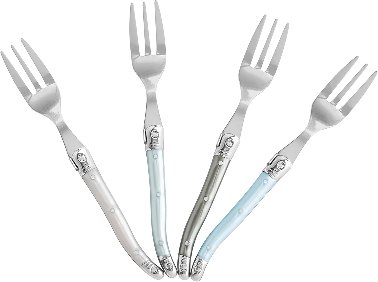 French Home Laguiole 4-Piece Cake Forks Set – Sophisticated Stainless Steel Forks with Mother of Pearl Handles – Laguiole Flatware Set for Cake, Fruit, or Appetizers (6.75")
