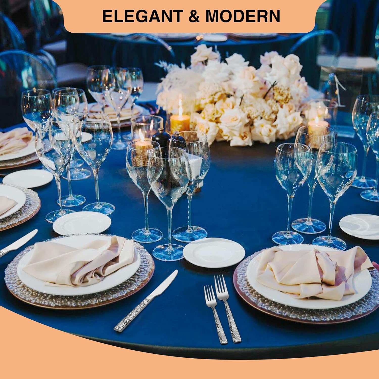 • ELEGENT, CASSICAL DESIGN: Fancy flatware with unique square hammered handles, create an elegant and eye-catching appearance, suitable for most tableware and any occasion, enhance your dining experience, wonderful gift for housewarming, wedding, birthday, thanksgiving, christmas