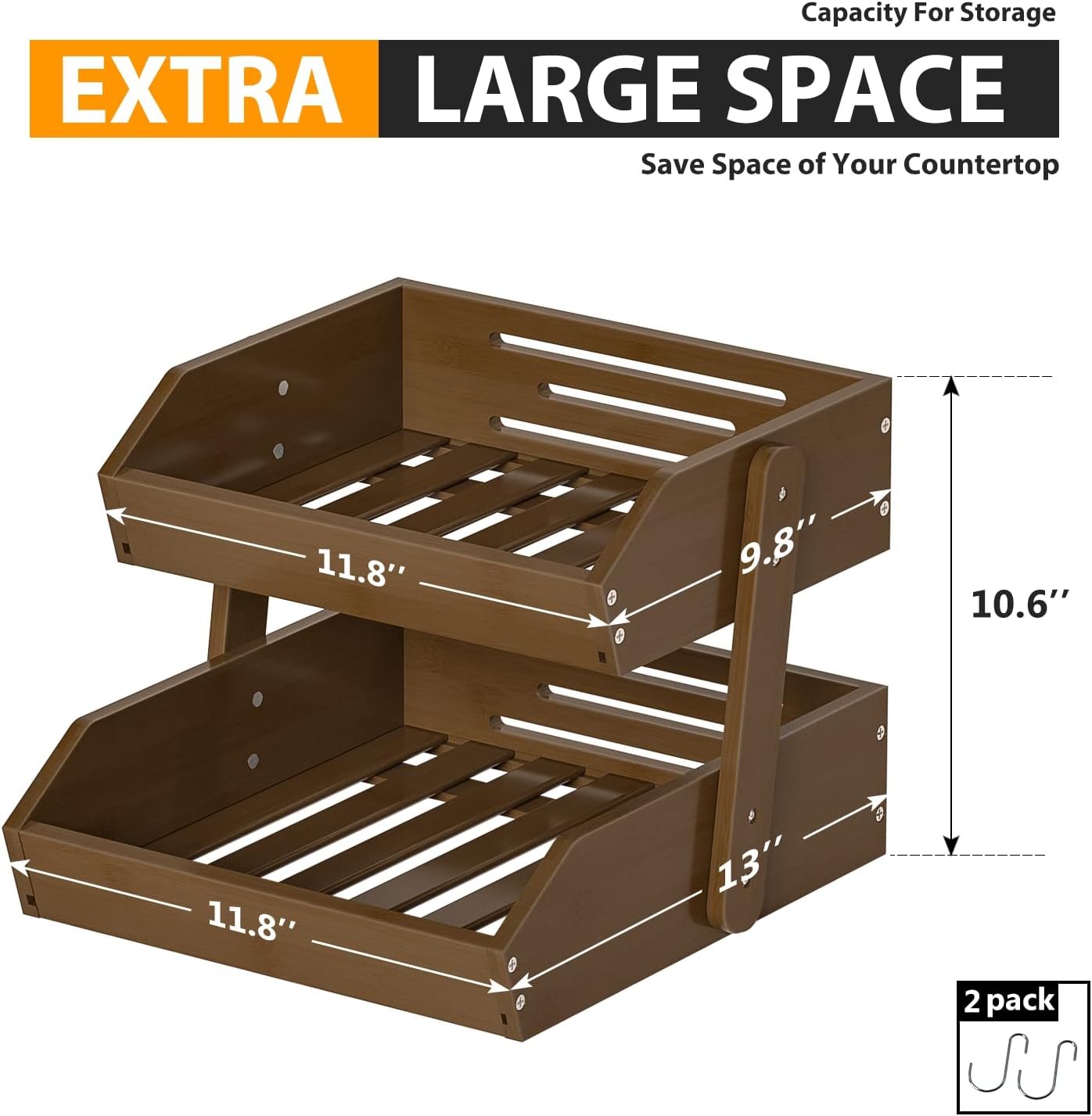 Bamboo Fruit Basket for Kitchen – 2 Tier Fruit Bowl For Kitchen Counter, Large Fruit Holder With 2 Banana Hangers, Idea For Fruit and Vegetable Storage, Bread Basket, Snack Organizer(WALNUT)