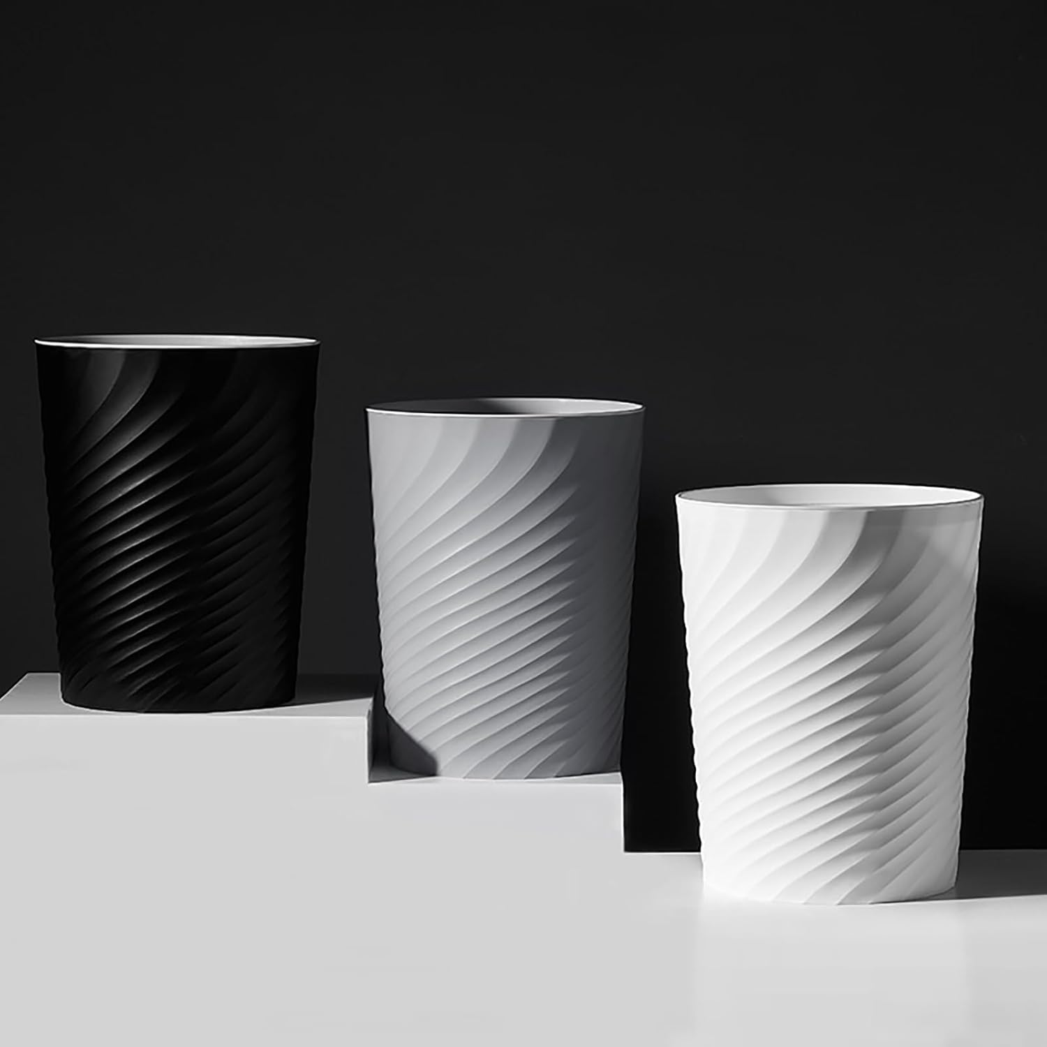 • Home Decoration: Screw thread shape design and white color, adding a modern touch to any space. The wastebasket is great for bathroom office bedroom college dorms, apartments and RVs.
