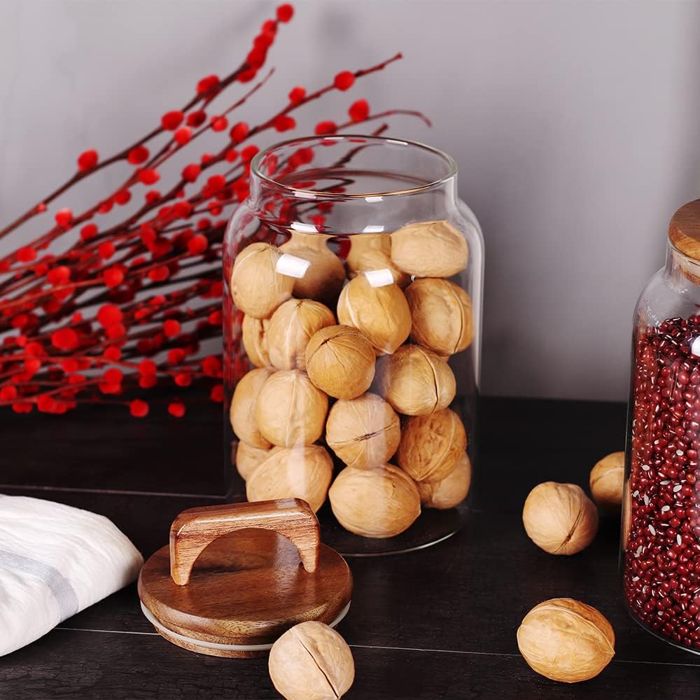 • Classic design :Unique handle design, very practical. The wooden cover of the thickened glass jar is easy to remove, even for children and the elderly