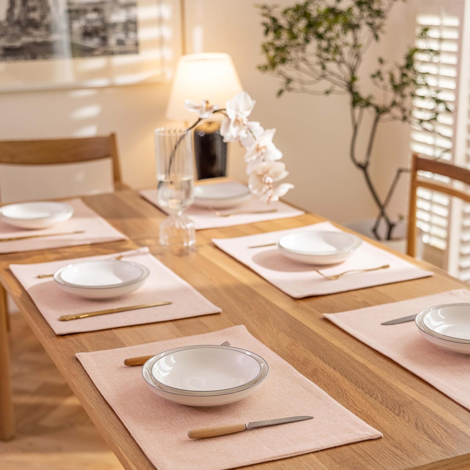 Demetex Pink Placemats Set of 6 Heat Resistant Linen Place Mats Washable Cloth Plate Mats for Dining Party Banquet Table Decorations, 13 x 19 inch, Pink
