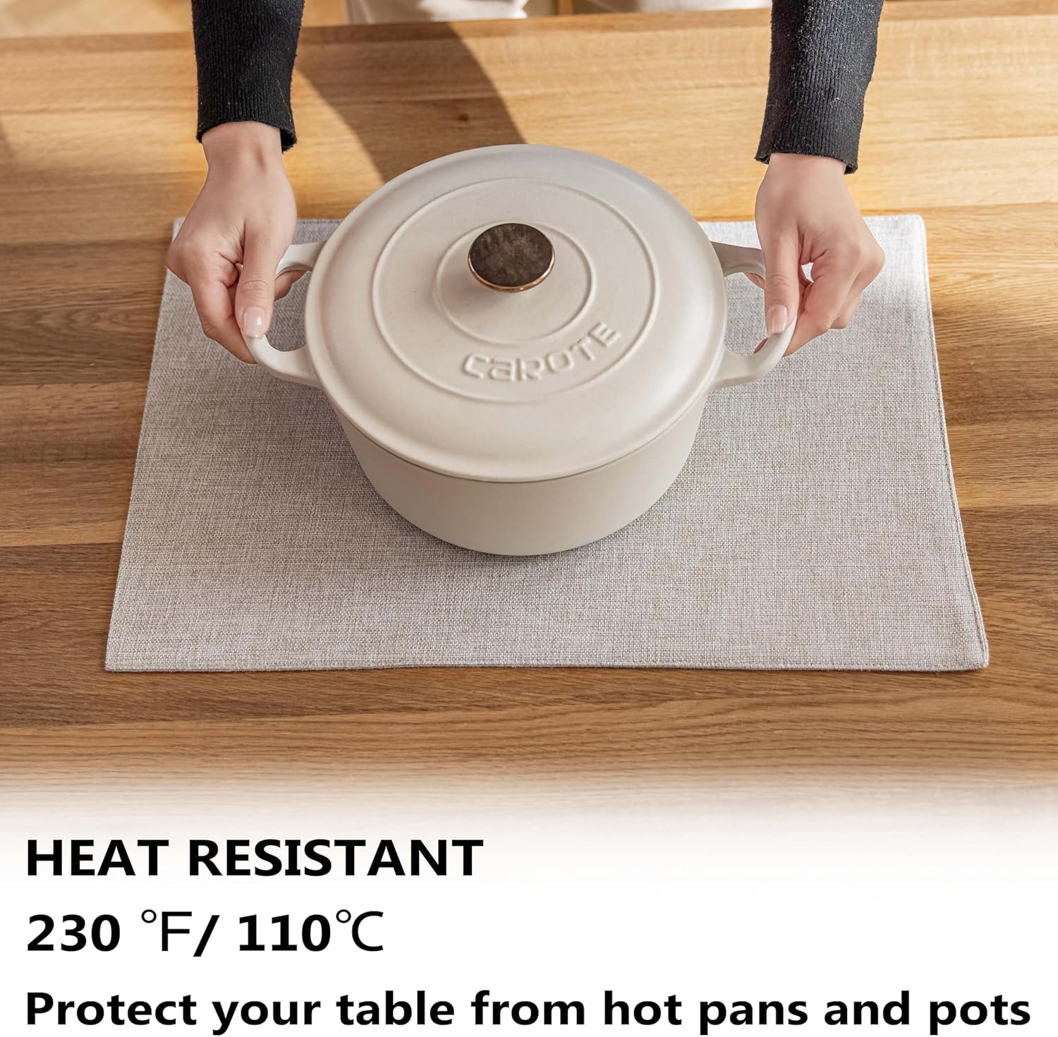 • Premium Fabrics: Our place mats are made of faux linen fabric, eco-friendly and durable placemats with exquisite workmanship which can be used for a long time. Not waterproof and liquid can go through placemats