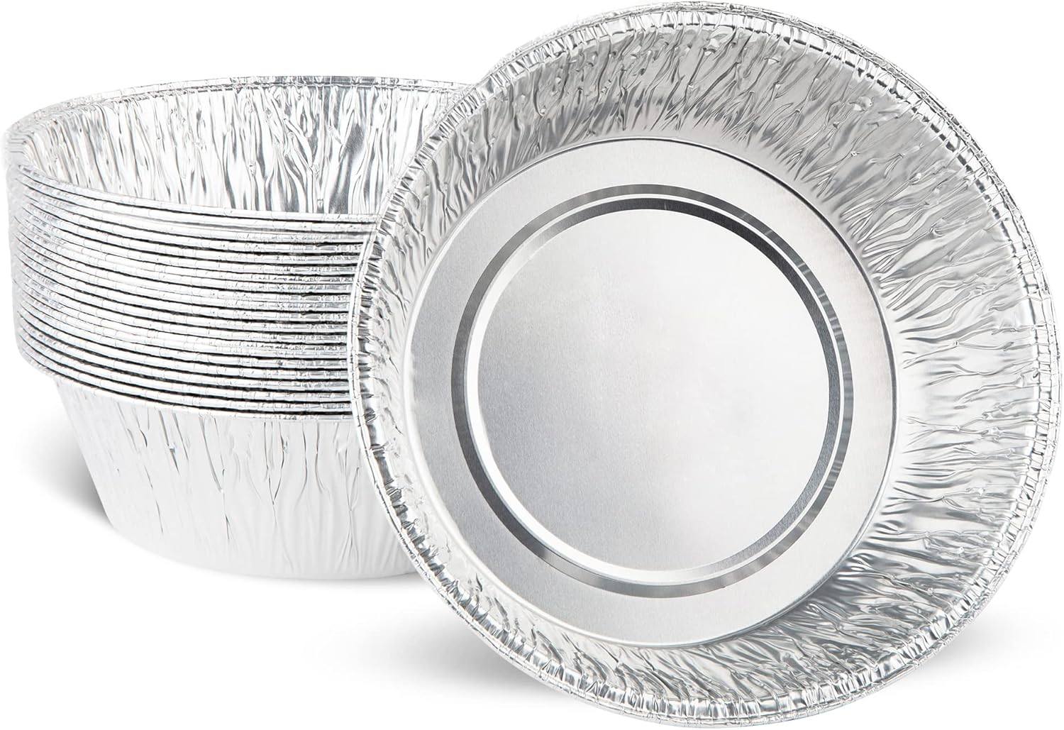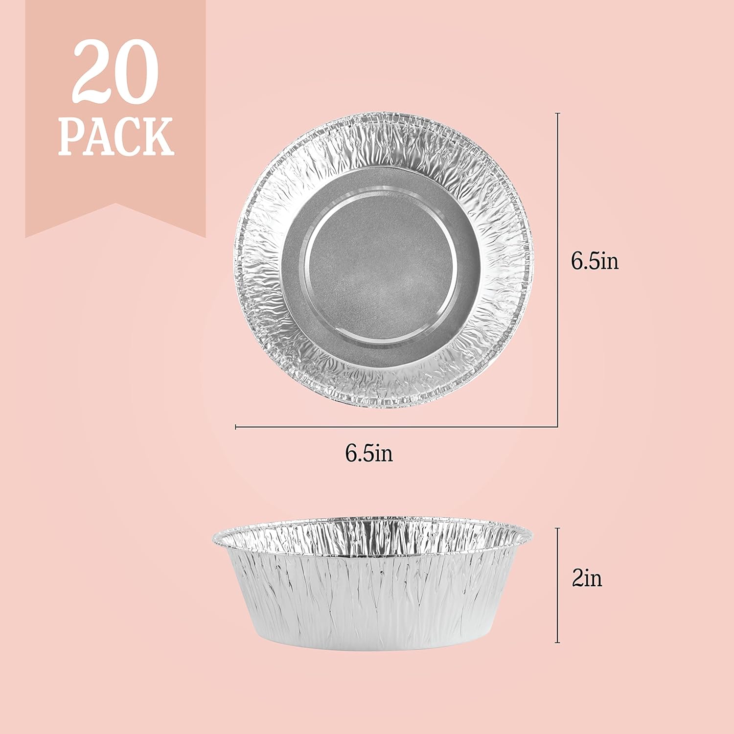 PLASTICPRO 6.5'' Inch Round Tin Foil Pans Disposable Aluminum, Freezer & Oven Safe - For Baking, Cooking, Storage, Roasting, & Reheating, Deep Pack of 20