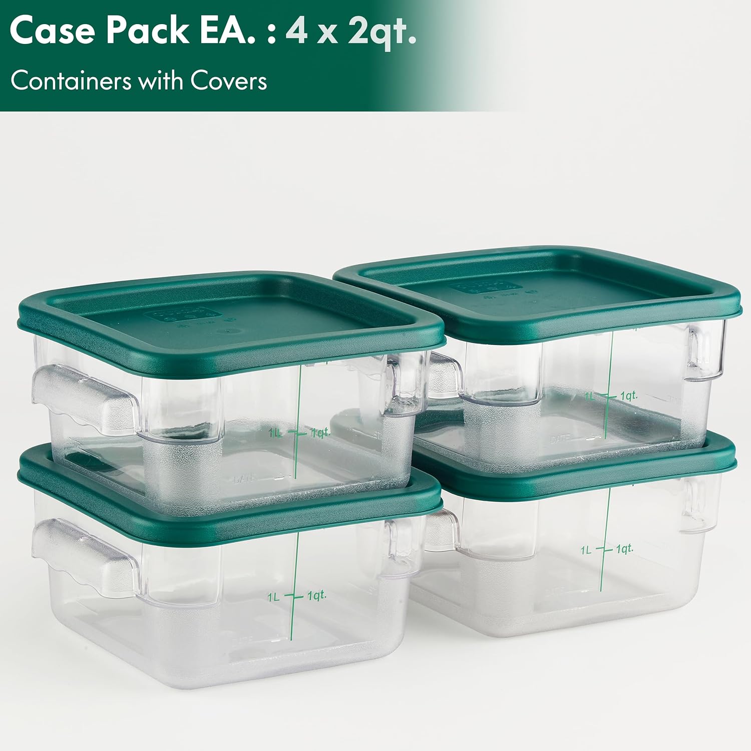 CURTA 4 Pack Food Storage Container with Green Lid - NSF Listed Commercial Grade in 2.0 Qt - Square, Clear, Polycarbonate