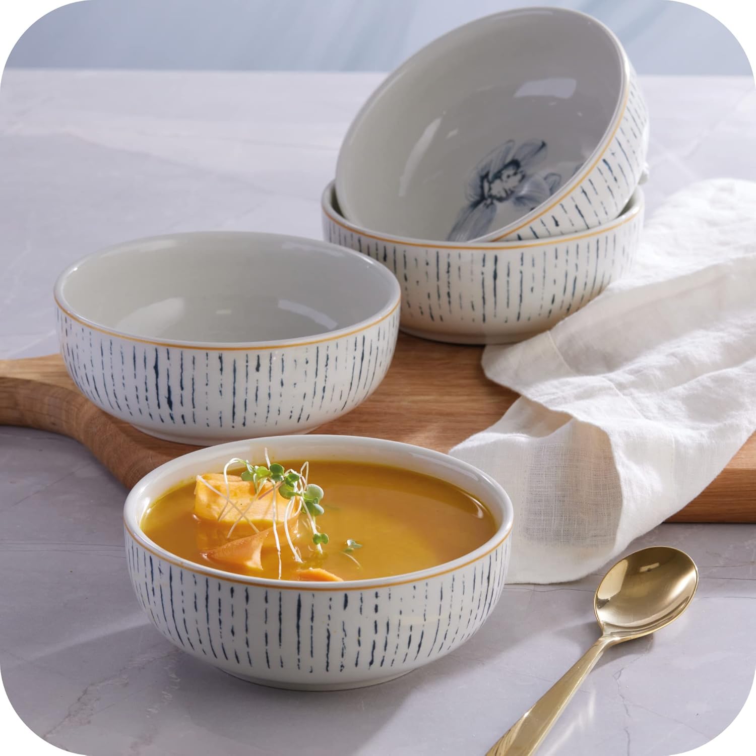 Corona 4 dinnerware Bowls Set | Cattleya 21oz | Service for 4 | Ceramic | Floral design | Set 4 Bowls | Cerámica