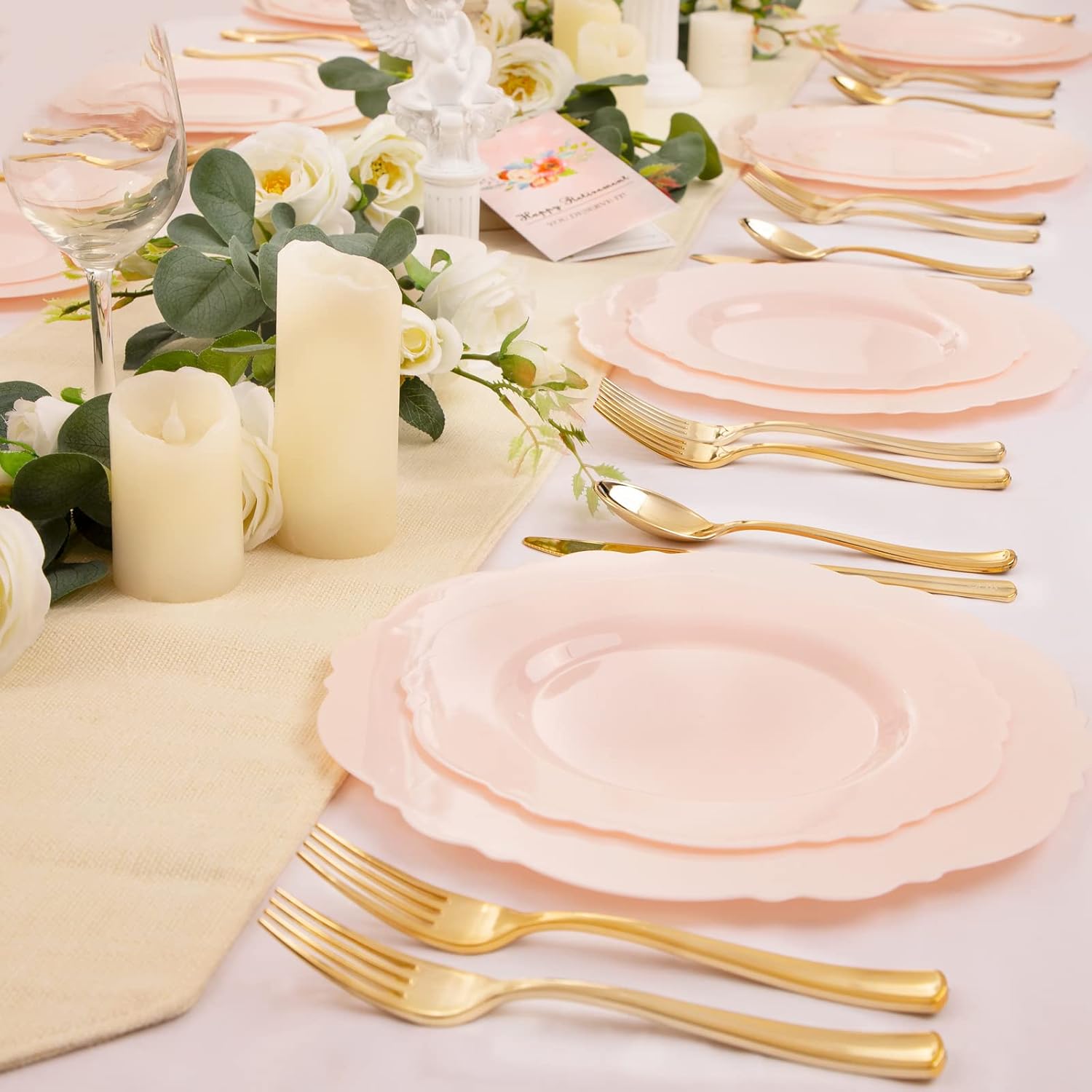 • SUITABLE FOR ANY OCCASION: Our pink plates disposable are designed for any formal or informal event such as weddings, engagement parties, anniversaries, parties, as well as catering, buffets, picnics and all other events and celebrations