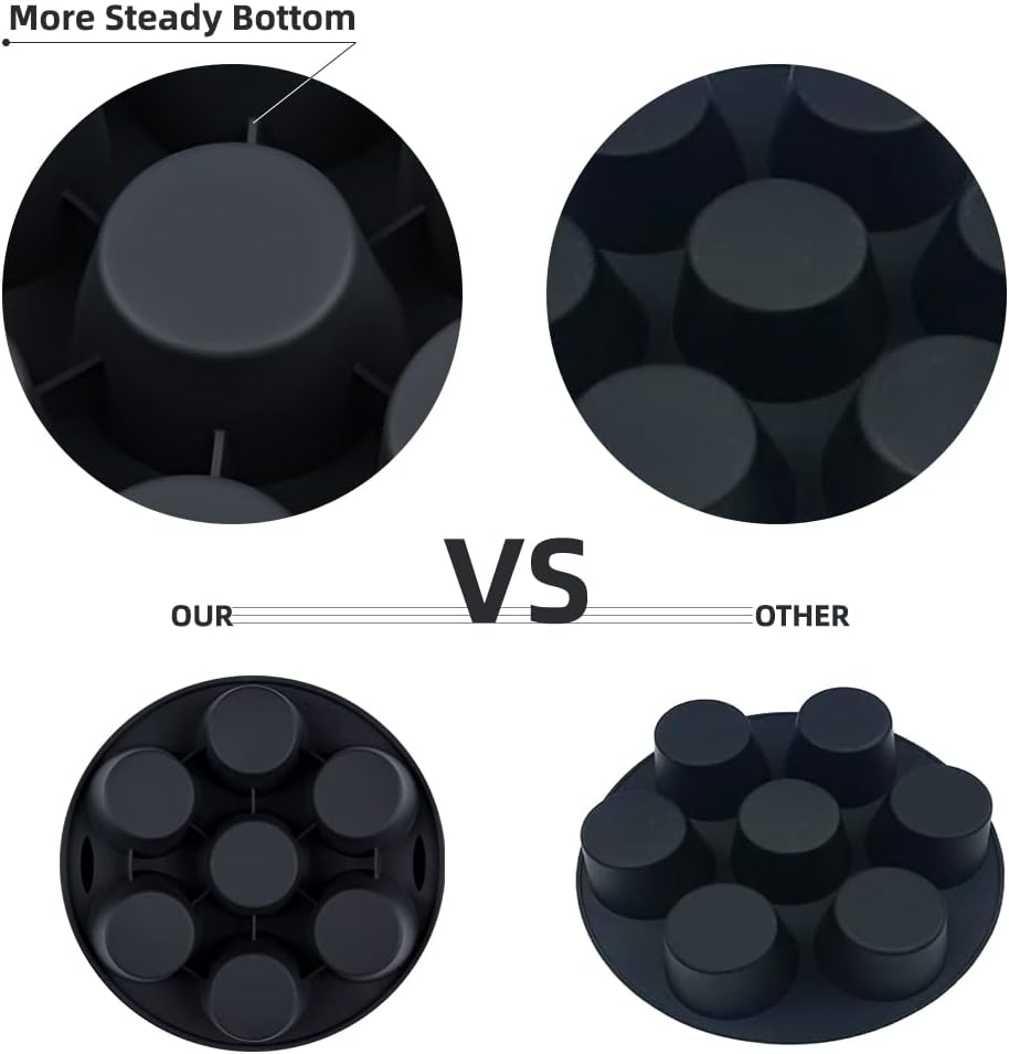 • FOOD GRADE SILICONE MUFFIN PAN: BPA free, pan size: 8.45", ideal for 8.5 inch basket or bigger. Each cup diameter top: 2.5", cup depth: 1.4"