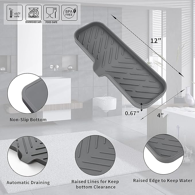 • Food Grade Silicone: The soap dispenser tray is made from high-quality food grade silicone, so it's safe for use in the kitchen or bathroom