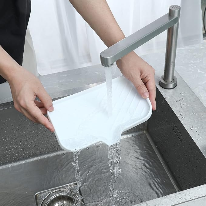 • Food Grade Silicone: The soap dispenser tray is made from high-quality food grade silicone, so it's safe for use in the kitchen or bathroom