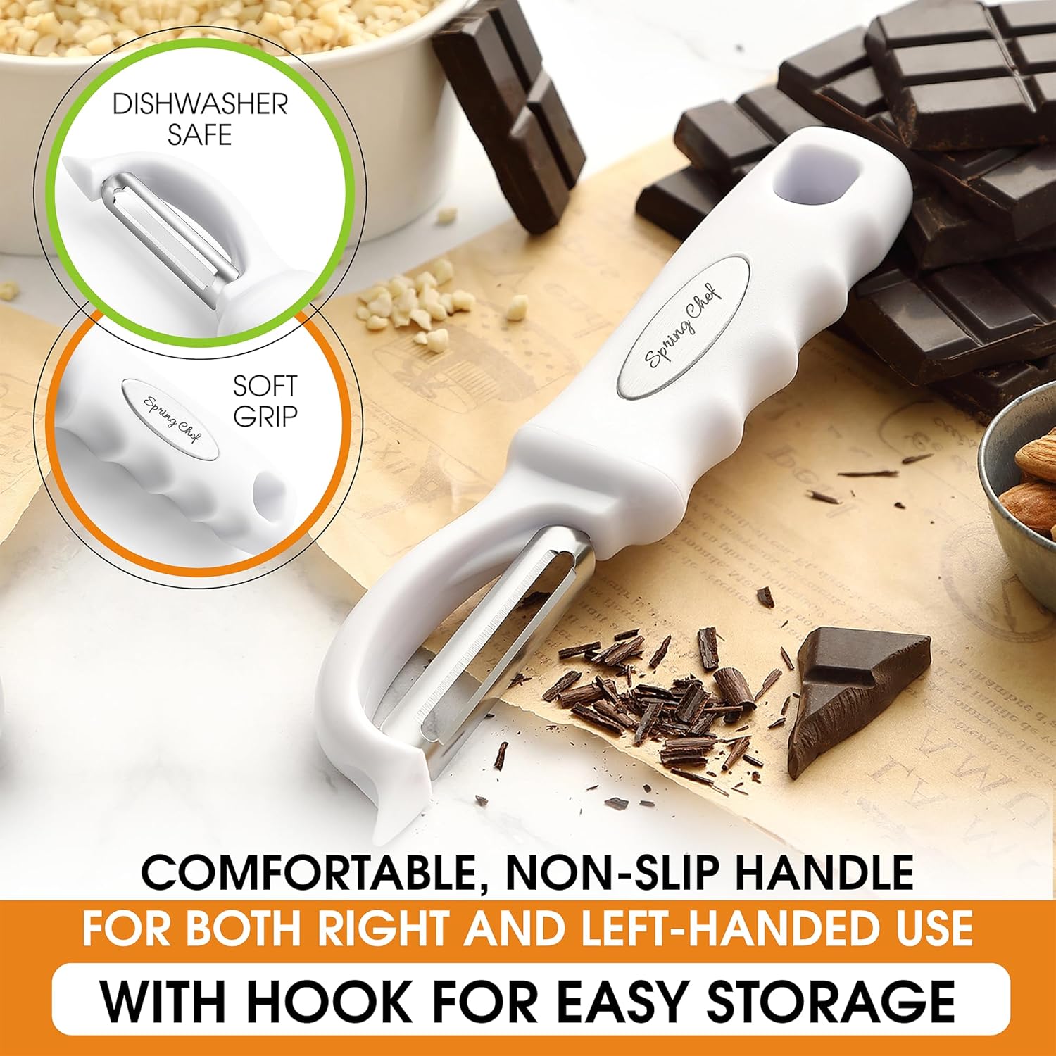 Spring Chef Premium Swivel Vegetable Peeler, Comfortable Handle and Ultra Sharp Stainless Steel Blades - Perfect Kitchen Peeler For Veggie, Fruit, Potato, Carrot, Apple - White - Set of 2