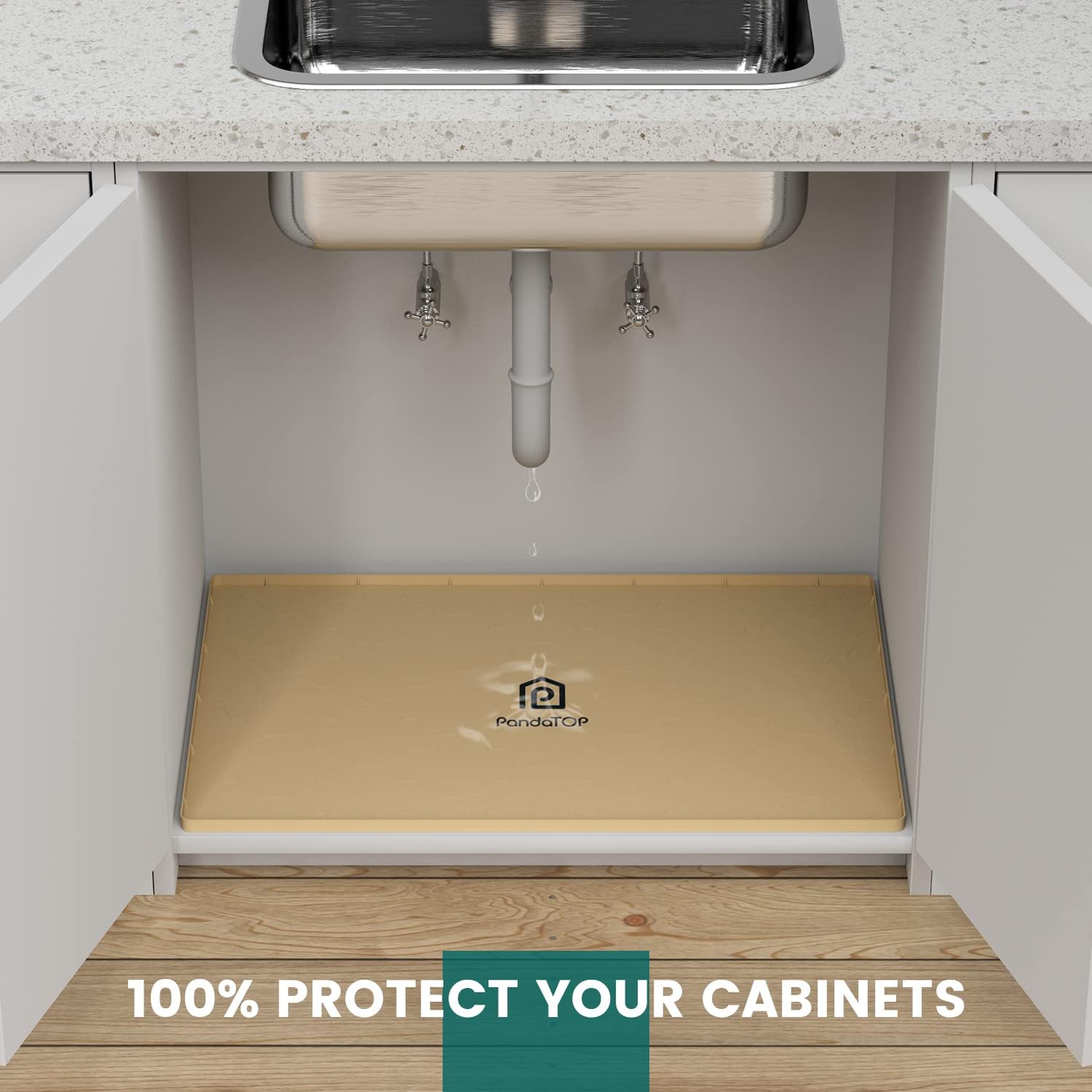 Under Sink Mat, 34" x 22" Silicone Kitchen Cabinet Tray, Waterproof & Flexible Under Sink Liner for Kitchen Bathroom and Laundry Room(Beige)