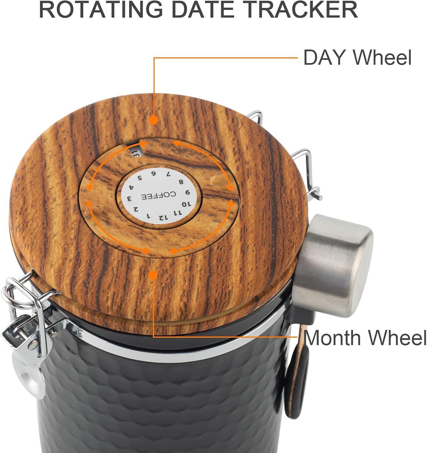 TEDSWAIT Coffee Canisters Airtight Coffee Bean Storage Container Kitchen Stainless Steel Food Storage Container with Scoop Date Tracker & CO2 Valve 61Fl Oz (Diamond Black)