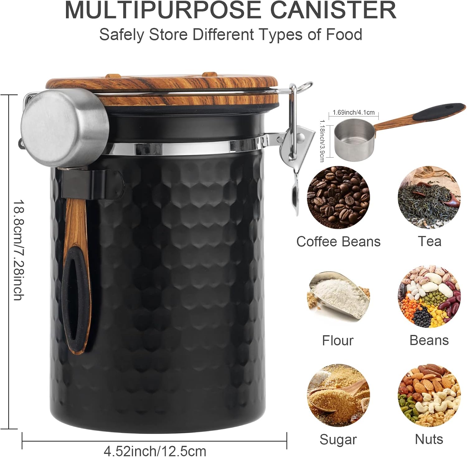 • 【Long last Freshness】: Our coffee canisters use professional food-grade materials and 304 stainless steel with a strong stainless steel buckle. It keeps quality coffee beans or ground coffee fresh for a long time, allowing you to enjoy every bite of coffee you like best.