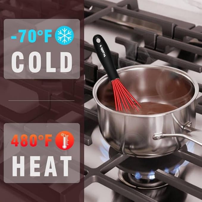 • Easy to clean and store : Walfos small whisks is designed with zero residue and can be hand washed or dishwasher safe. Make your kitchen life easier. Designed with hooks at the end of the handle for easy hanging and drying, easy storage and less clutter
