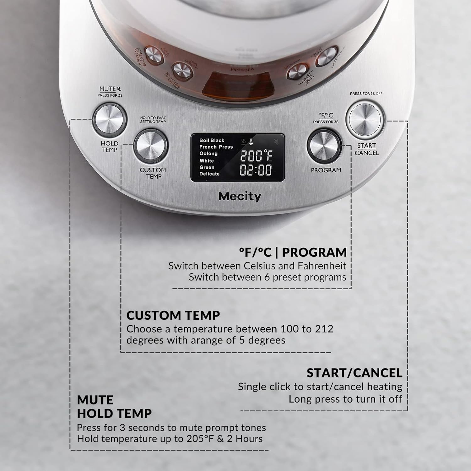 • 𝑷𝒓𝒐𝒇𝒆𝒔𝒔𝒊𝒐𝒏𝒂𝒍 𝑻𝒆𝒂 𝑴𝒂𝒌𝒆𝒓 - Mecity tea kettle is designed for tea lovers, made of solid materials and equipped with advanced programs, you can always enjoy the fragrance of tea and health benefits of tea with Mecity Teapot