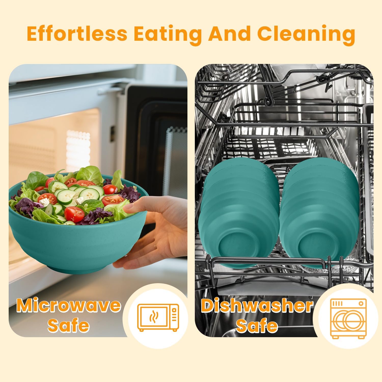 • MORE THICK & LARGE CAPACITY: Thick and smooth round edges provide a sturdy, comfortable grip while preventing deformation. With a 60 oz capacity, these large bowls are perfect for cereal, salad, fruit, rice, and noodles without any spills. Whether for parties, picnics, camping, or everyday meals at home, school, office, outdoors, or while traveling, these wheat straw big bowls are a must-have.