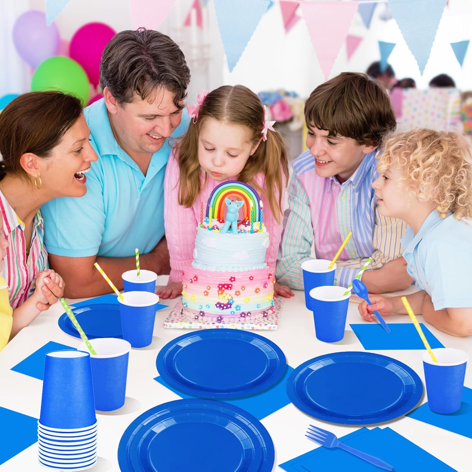 • Convenient & Easy Clean up: Our disposable blue party plates supplies are good for you to enjoy the party . When the party is over, you can just throw it away save your time. Party plates and napkins make it easy to create a clean party atmosphere