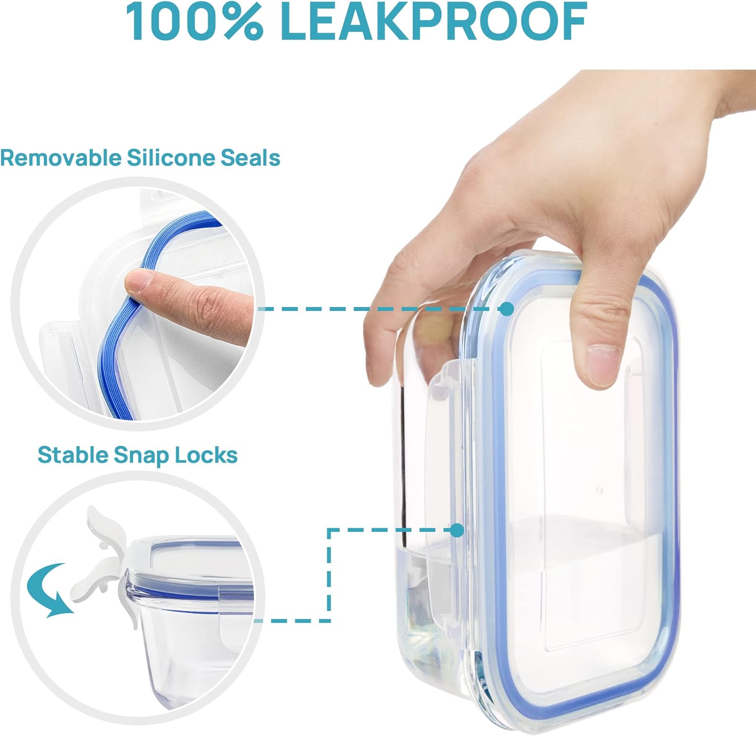 • 【100% Leak Proof Airtight Lid】Glass food containers is designed with removable silicone seals and 4-hinge snap locks to ensure zero leaking or spilling, which also prevent smell go out and keep food fresh.