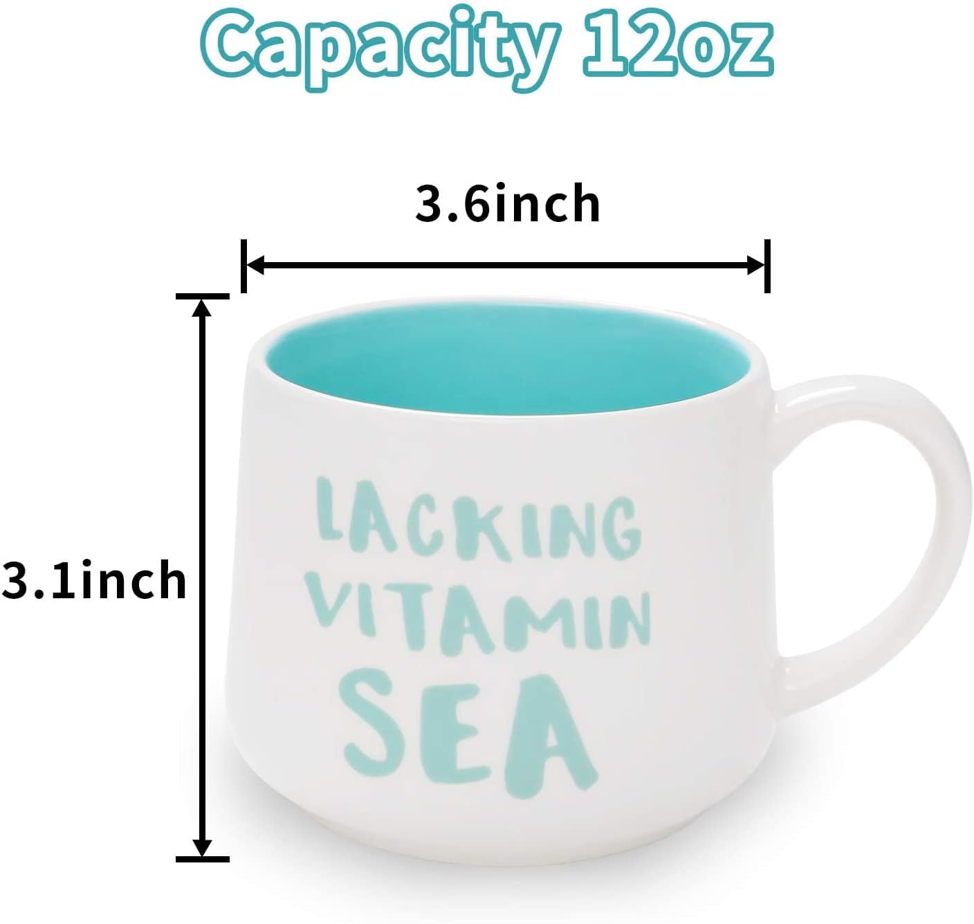• Diameter:3.6" height:3.1" with handle width:5.3". Capacity:350ml(12 oz)