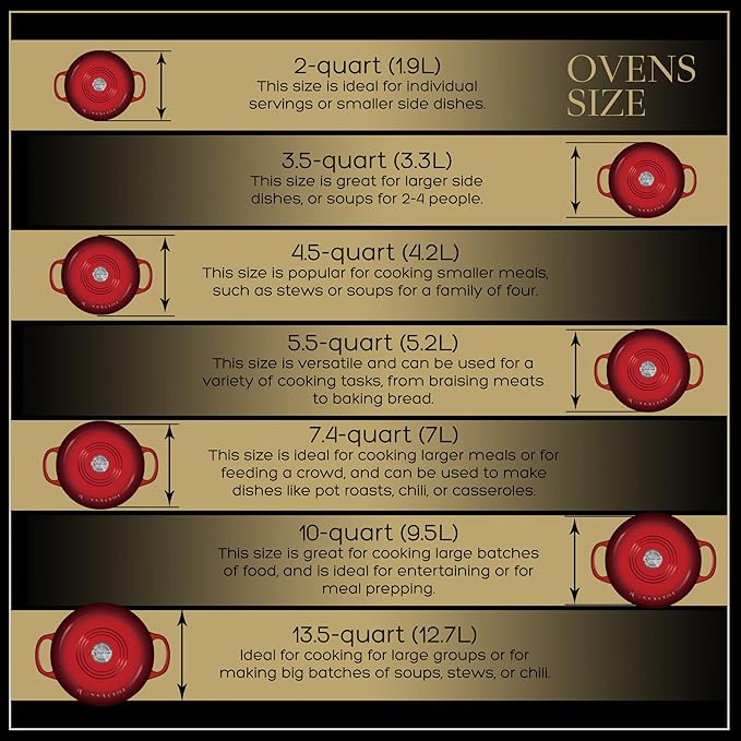 • ONE AND DONE Perfect for slow roasting, baking, cooking, braising, boiling, broiling, searing, sautéing, deep frying and slow cooking, this Dutch oven is the only pot you need