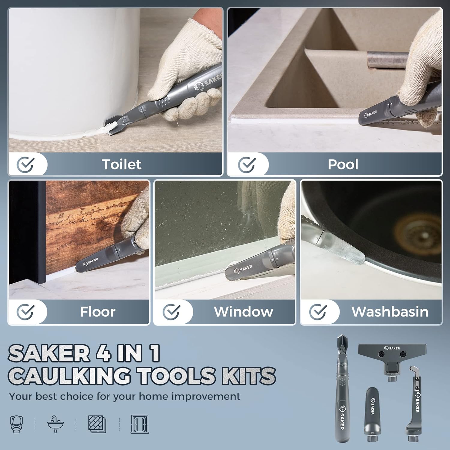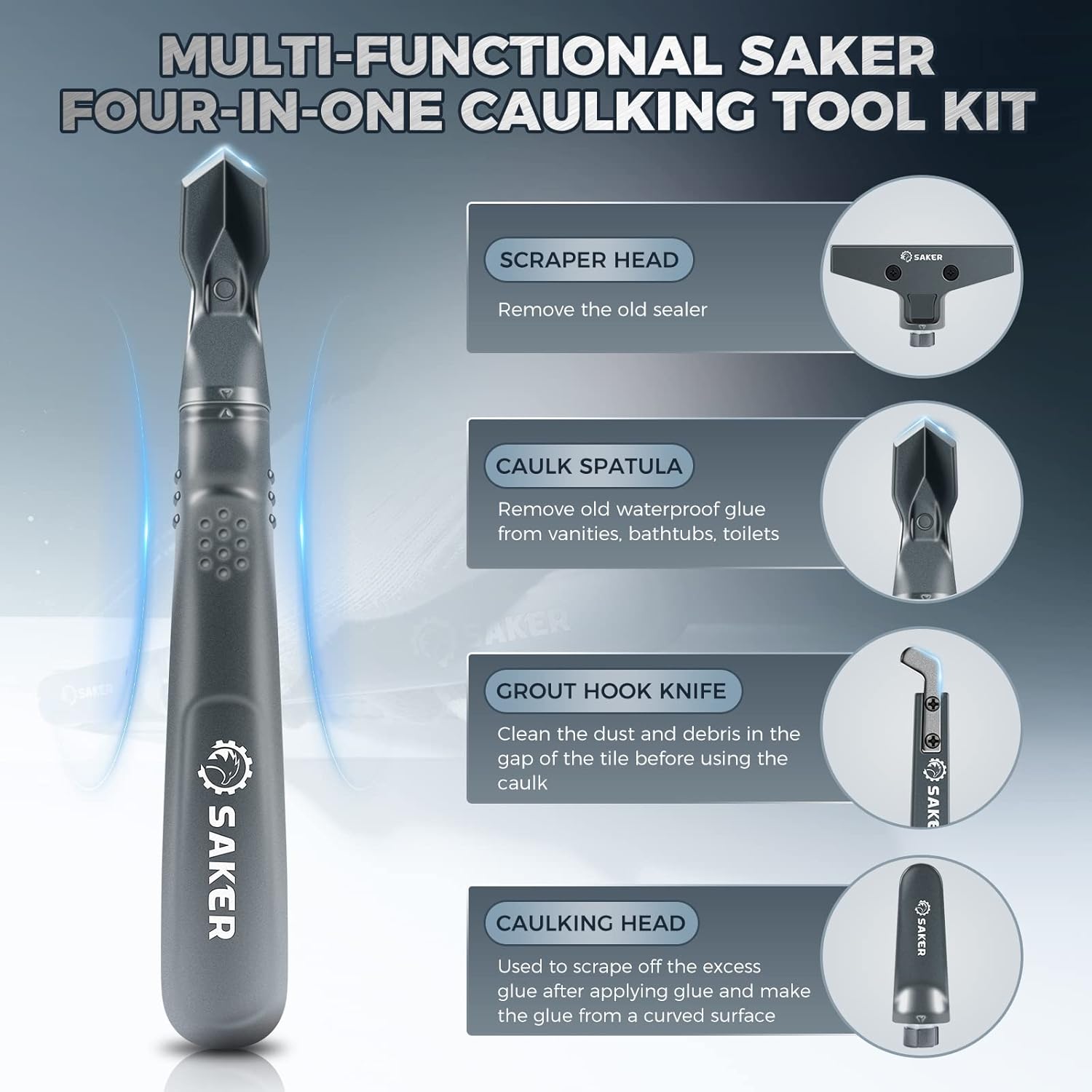 • 【Multi-function Patent Design】 Saker 4 in 1 caulking tool kit use new professional design including 4 detachable functional cutter heads.It can help you remove the seal and re-sealing and repair the gap and clean the residual glue easily.
