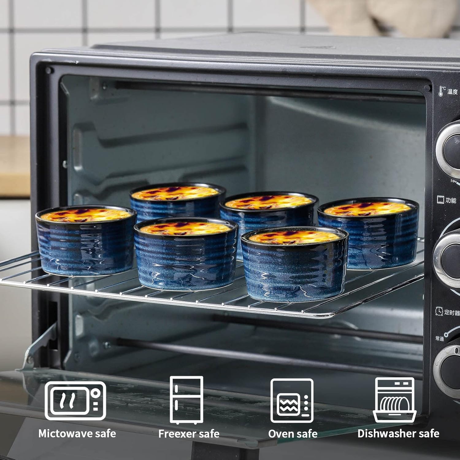 Hasense 4 oz Ramekins Oven Safe,Ceramic Creme Brulee Dish for Baking Set of 6,Porcelain Dipping Sauce Bowls for Pudding, Souffle,Serving Dip,Custard,Ice Cream(Blue)