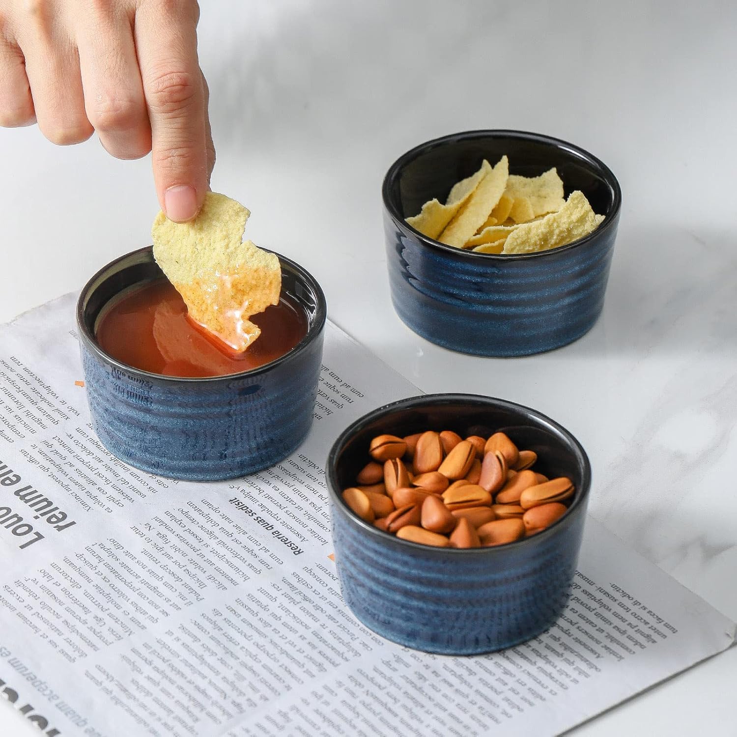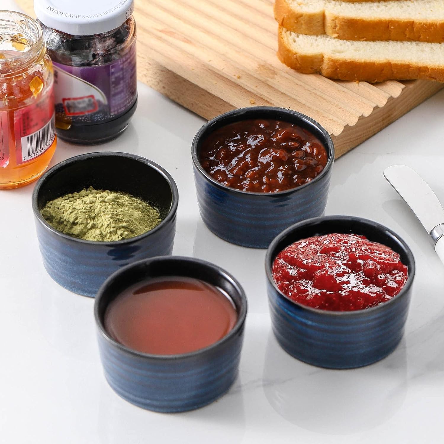 • VERSATILE RAMEKINS BOWLS SET: 4 oz porcelain ramekins is not only perfect for baking souffle, cream brulee, molten lava cake, bread pudding. And dipping bowls for holding dipping sauce, assorted nuts, ice cream, fruit salad, snacks, and other tasty desserts.